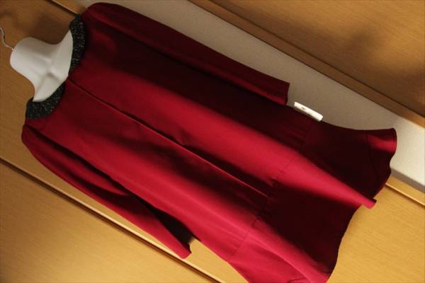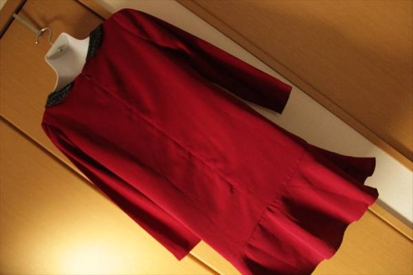 ★新品タグ付き!earth m&e 7分袖ぺプラムワンピボルドー系★ | ||||