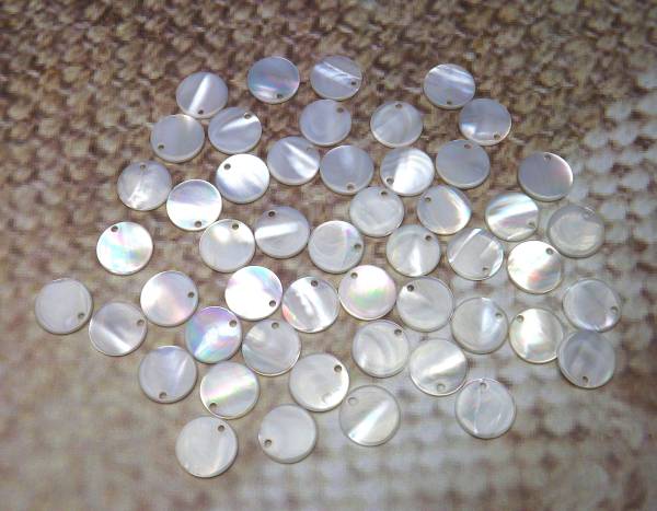 | ★商品説明★ | 淡水真珠貝のパーツです。 淡い輝きが素晴らしです。 9mmの丸型です、上部に細い穴をあけています。丸カンなど付けて、 イヤリングや、ペンダントトップに最適。 直接ニットやTシャツに付けても良いと思います。 またかばん等のアクセントにいかがですか? 9mm 50個セットで販売します。 9mm.11mmがあり、上部に1穴と、両端に穴の2型があります。 「 淡水真珠 貝 パーツ 」で検索してください もちろん新品です。写真のセットをお届けします。 天然物ですので、柄等は均一ではありません。 ご了承ください。よく掲載写真をご覧のうえお買い求めください。 ボタンを変えると驚く程、洋服のセンスがアップします。 一度おためしあれ。 | ||