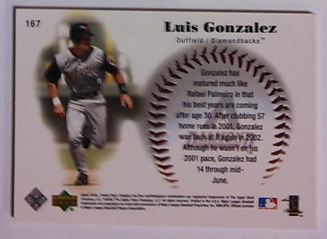商品名;『2002 Upper Deck Game Face #167 Luis Gonzalez ルイス・ゴンザレス』