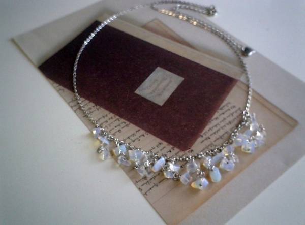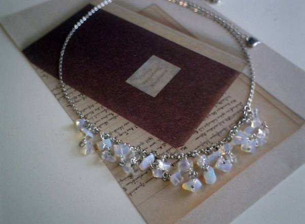 ロマンチックを紡いで・・シリーズです♪純白のブーケ・・清楚なホワイトオパールのネックレスです♪華奢なチェーンに5ミリから9ミリ位のさざれをグラデーションに紡ぎました♪長さは56センチ+アジャスター12センチで最長67センチ位です♪♪トップは長い所で2・5センチ位です♪お揃いのネックレスやブレスレットも出品しています♪シンプルで飽きのこないいつまでも着けられるデザインを考えて作りました!ハンドメイドをご理解頂いてノークレーム、ノーリターンでお願いします