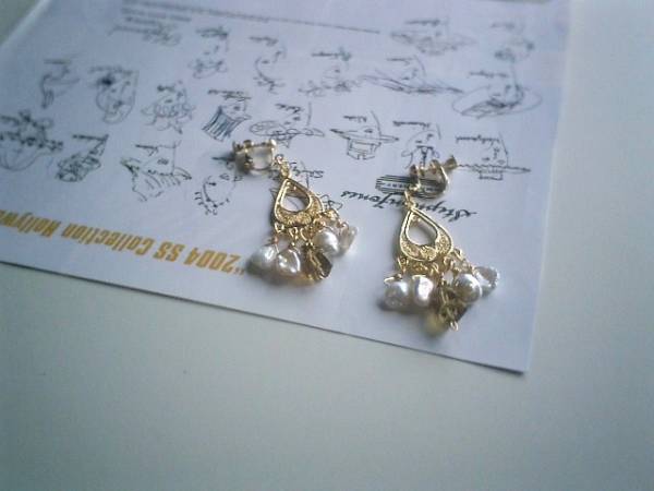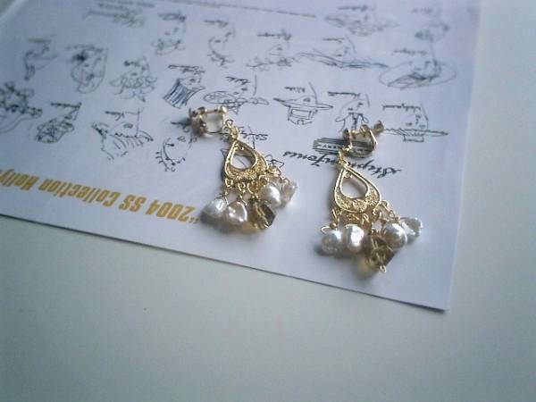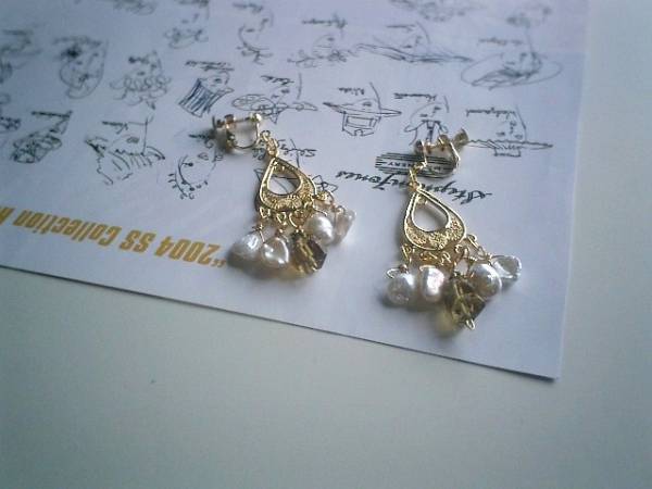 パリの衣裳部屋・・シリーズです♪芥子パールとレモン水晶のイヤリングです♪オフホワイトの芥子パールや繊細なラフカットのレモン水晶にデザインチャームを合わせてアンティーク・モダンしています♪芥子パールは8ミリから10ミリ位、レモン水晶は10×9ミリ位です♪長さは全長6センチ位です♪ピアスにも変更出来ます♪お揃いのネックレスも出品しています♪シンプルで飽きのこないいつまでも着けられるデザインを考えて作りました!ハンドメイドをご理解頂いてノークレーム、ノーリターンでお願いします