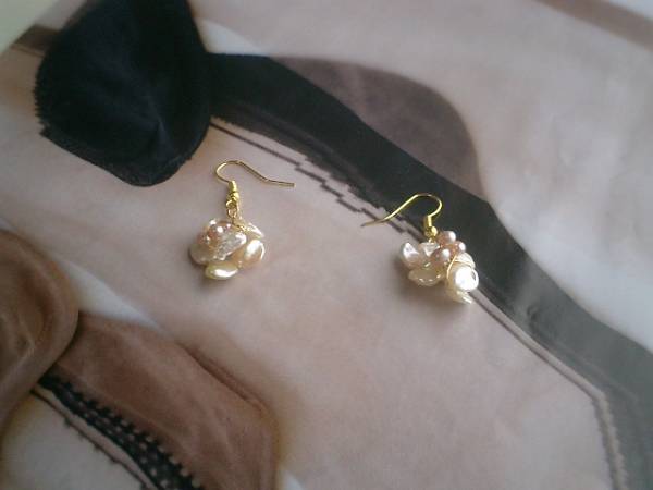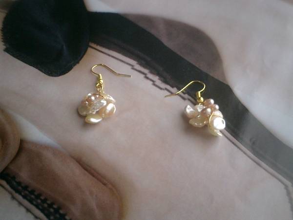 ネオ・ロマンチック・・シリーズです♪白い花びら・・やさしい芥子パールのピアスです♪8ミリから10ミリ位の芥子パールを重ねて白い花びらを作りました♪繊細で可憐な表情です♪長さは全長4センチ位です♪イヤリングにも変更出来ます♪お揃いのネックレスやブレスレットも出品しています♪シンプルで飽きのこないいつまでも着けられるデザインを考えて作りました♪ハンドメイドをご理解頂いてノークレーム、ノーリターンでお願いします
