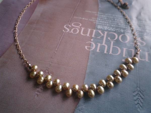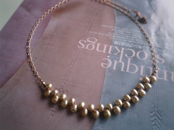ネオ・ロマンチック・・シリーズです♪女の子のパール・・シックなシャンパンゴールドのネックレスです♪ライスの淡水パールに繊細なピンクゴールドのチェーンを合わせてやさしい表情です♪6×8ミリ位のライスの淡水パールはシンプルに繋いで合わせやすいデザインです♪長さは全長65センチ位で調節自由です♪お揃いのネックレスやブレスレットも出品しています♪♪ハンドメイドをご理解頂いてノークレーム、ノーリターンでお願いします