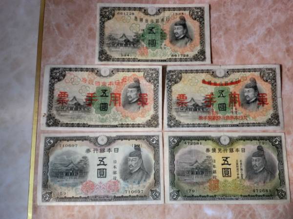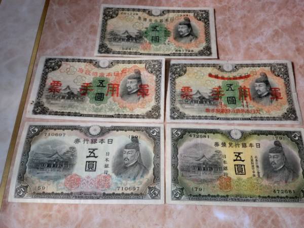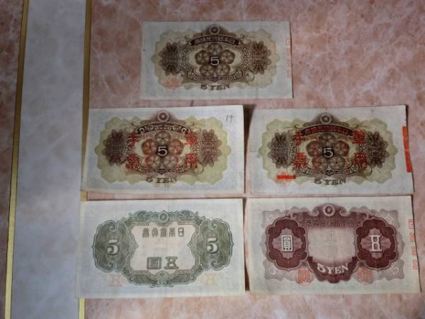 1次5円・2次5円・3次5円・乙号5円・丙号5円を5種5枚セットです。