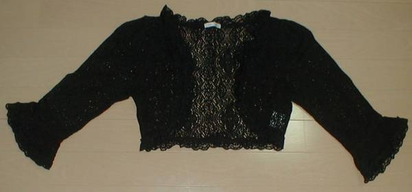 レストローズ(L'EST ROSE)の七部袖ボレロです。黒。新品未着用ですが保存時のシワあります。ご了承頂ける方のみ入札お願いします。サイズは2です。素材は、綿85%・ナイロン10%・ポリウレタン5%です。