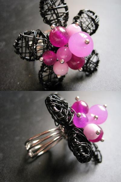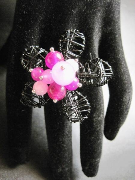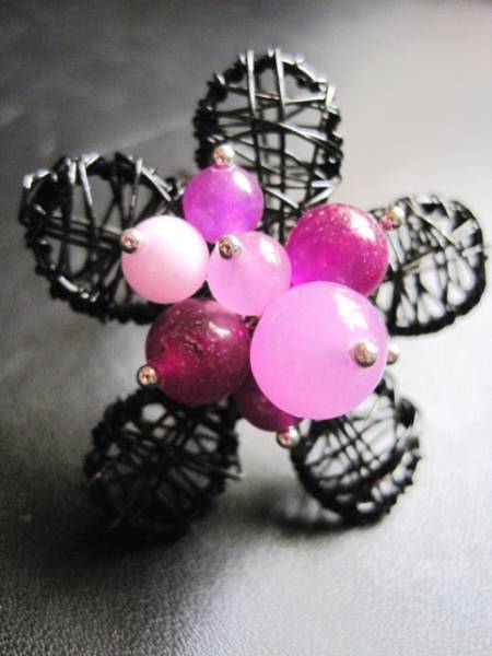 黒の針金で編んだ3Dの立体のお花に、色んな紫でセンターを縁取り可愛いです・・