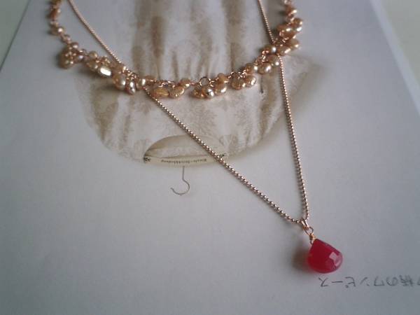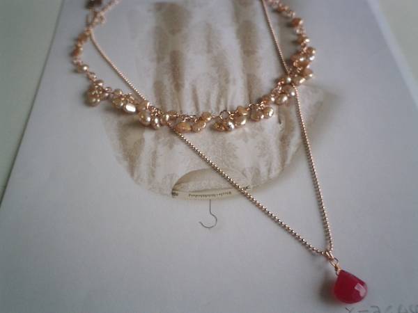 女の子テイスト・・シリーズです♪可憐なピンクを集めて・・淡水パールとピンクカルセドニーのネックレス2点セットです♪どちらもピンクゴールドのチェーンを合わせて大人のロマンチックしています♪5ミリから6ミリ位のバロックの淡水パールのネックレスは花束のようにまとめて可憐な表情です♪長さは全長60センチ位で調節自由です♪チョーカー風にされても素敵です♪10ミリ位の多面カットのピンクカルセドニーは華奢なピンクゴールドのボールチェーンを合わせました♪長さは60センチ+アジャスター12センチで最長72センチ位です♪どちらも単品やブレスレットも出品しています♪シンプルで飽きのこないいつまでも着けられるデザインを考えて作りました!ハンドメイドをご理解頂いてノークレーム、ノーリターンでお願いします