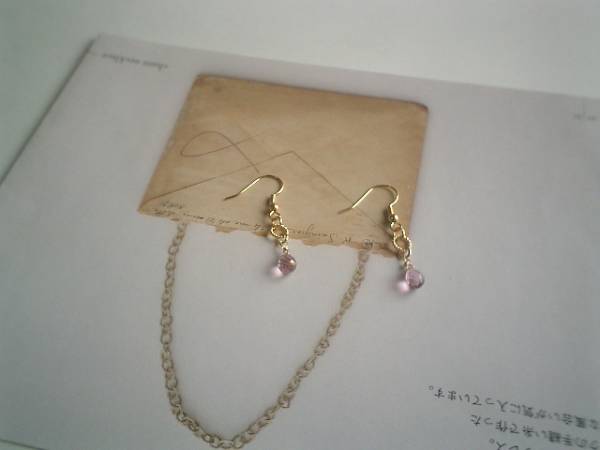 ロマンチックを集めて・・シリーズです♪可憐なピンク・・可憐なピンクトルマリンのピアスです♪淡いパープルピンクのお色が大人のロマンチックしています♪繊細なドロップカットのピンクトルマリンは5ミリ×7ミリ位です♪華奢なボールチェーンやデザインリングを合わせました♪長さは4センチ位です♪イヤリングにも変更出来ます♪お揃いのネックレスも出品しています♪♪シンプルで飽きのこないいつまでも着けられるデザインを考えて作りました♪ハンドメイドをご理解頂いてノークレーム、ノーリターンでお願いします