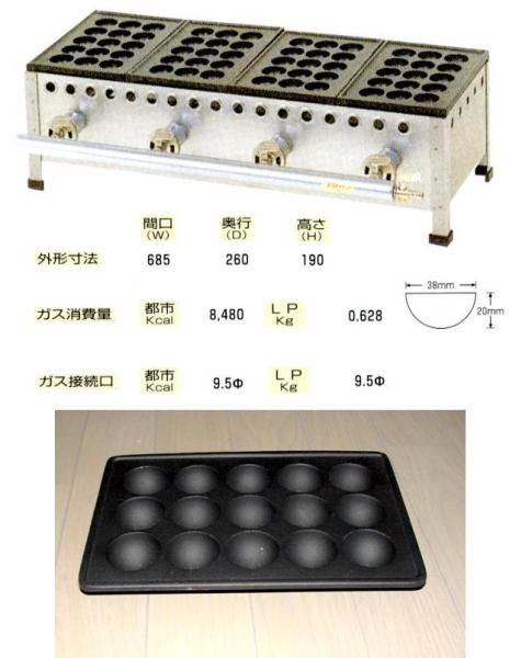即落札★たこやき器15穴★4丁掛★プロパンガス用