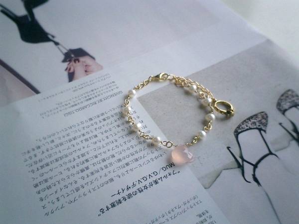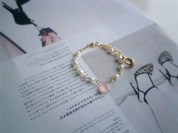 お気に入りのフォルム・・シリーズです♪小さなパール・・淡水パールとピンクカルセドニーのブレスレットです♪小粒の淡水パールに繊細なピンクカルセドニーのマロンカットを合わせて可憐な表情です♪淡水パールは5ミリ位のポテト、ピンクカルセドニーは9×13ミリ位です♪長さは全長23センチ位で調節自由です♪お揃いのネックレスやイヤリングも出品しています♪シンプルで飽きのこないいつまでも着けられるデザインを考えて作りました!ハンドメイドをご理解頂いてノークレーム、ノーリターンでお願いします