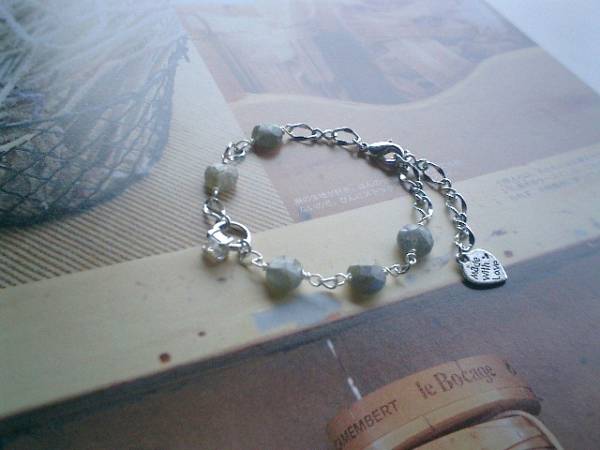 私的関心・・シリーズです♪神秘的なラブラドライトのブレスレットです♪シックな色で可憐にまとめました♪繊細なブルーグレーのラブラドライトは8ミリのコインカットです♪ジルコニアのドールリングを合わせてひっそりロマンチックしています♪♪長さは全長22センチ位で調節自由です♪シンプルで飽きのこないいつまでも着けられるデザインを考えて作りました!お揃いのネックレスも出品しています♪ハンドメイドをご理解頂いてノークレーム、ノーリターンでお願いします