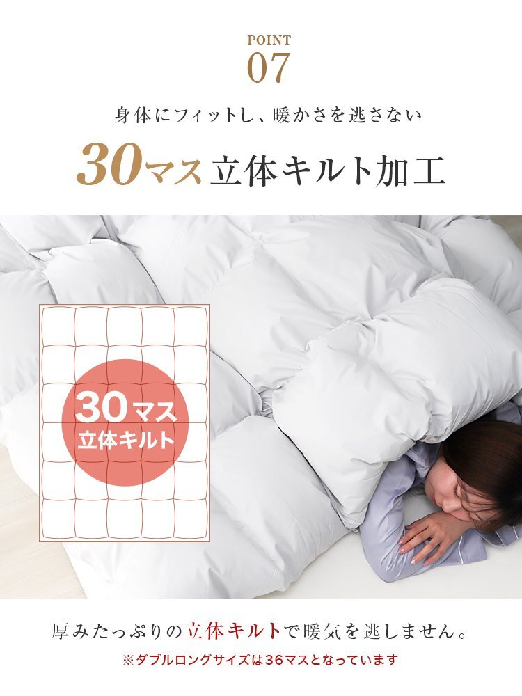 \ふっくら、清潔で高品質の羽毛/ ■ホワイトダックダウン93% ■業界高水準の洗浄度1000mm ■ダウンパワー400dp以上 ■国内パワーアップ加工 \側生地にもこだわりポイント/ ■30マス立体キルト加工で暖かさ抜群! ■保温力に優れた超軽量生地「TTC」で、ふんわり軽やかな掛け心地 ■やわらかく、なめらかな肌触りのピーチスキン加工 ■羽毛の飛び出しを防ぐ、二重縫製&ダウンプルーフ加工 ■布団とカバーをしっかり固定する便利なカバーループ付き \安心の抗菌・防臭・防ダニ加工済/ ■SEKマーク取得 ■オゾンクリーン加工 【商品詳細】 カラー: グレー(無地) サイズ:(約)幅190cm×長さ210cm(ダブルサイズ) 重量:(約)2.4kg 充填量:(約)1.3kg 素材:(側地)ポリエステル85%、綿15% (詰め物)ホワイトダックダウン93%、フェザー7% (羽毛ふとん 羽毛 掛布団 かけ布団 毛布 あったか寝具 冬寝具 冬布団 ダウン ホワイトダックダウン 高品質 暖か 秋 冬 防寒 人気 おすすめ WEIMALL) |