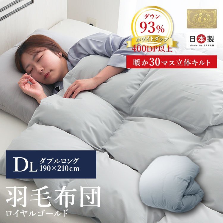 | 日本羽毛製品協同組合より、最高級の素材と縫製技術の証「ロイヤルゴールドラベル」の認定を得た安心・高品質の日本製 羽毛布団です。
