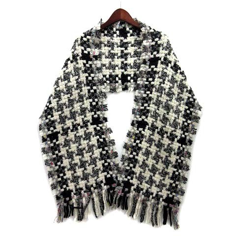 フェリーチェレガーロ FELICE regalo 格子編み ニット マフラー ホワイト ブラック 白 黒 イタリア製 レディース