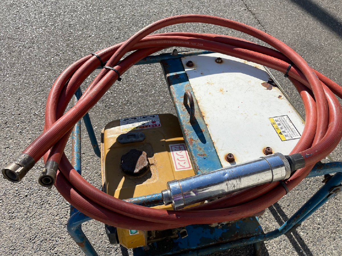 ツルミポンプ HI-PRESSURE JET HPJ470E2 高圧洗浄機です。燃料ガソリン動作確認済み。あくまで空転での水の吸い上げ排出の確認になりますので状況に応じてメンテナンス等してお使いください。