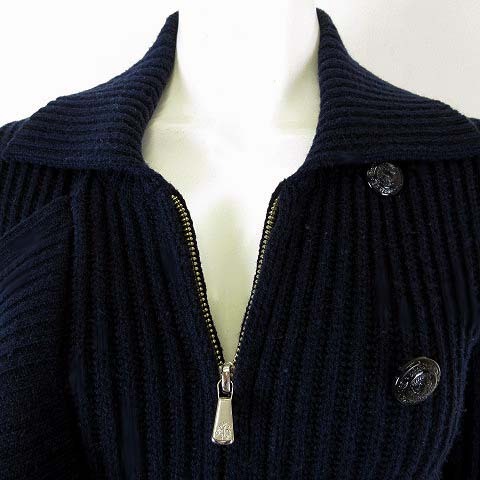 ブルックスブラザーズ BROOKS BROTHERS ニット カーディガン ダブル ジャケット ジップ ロゴ メタルボタン XS 紺 ネイビー 正規品