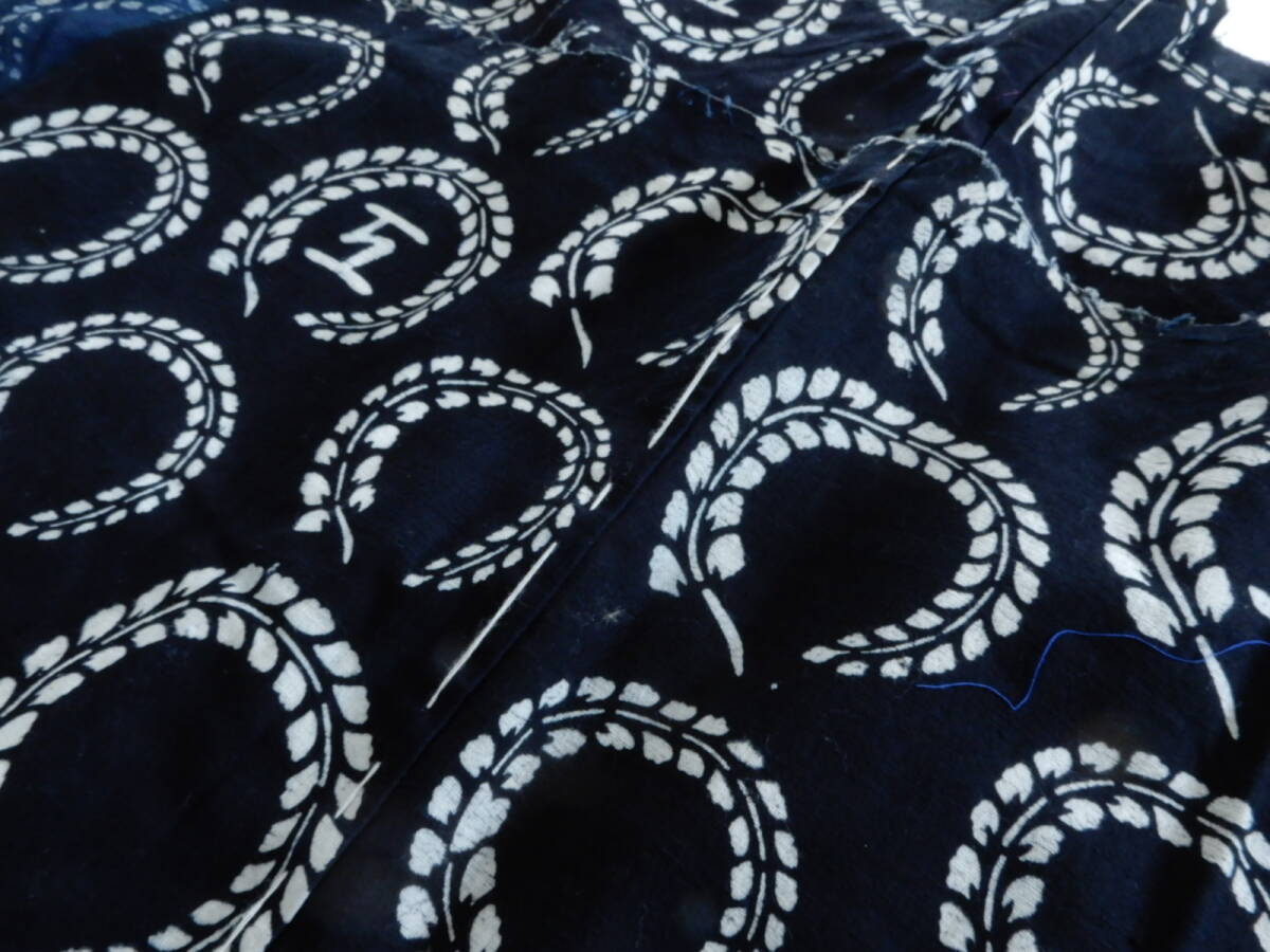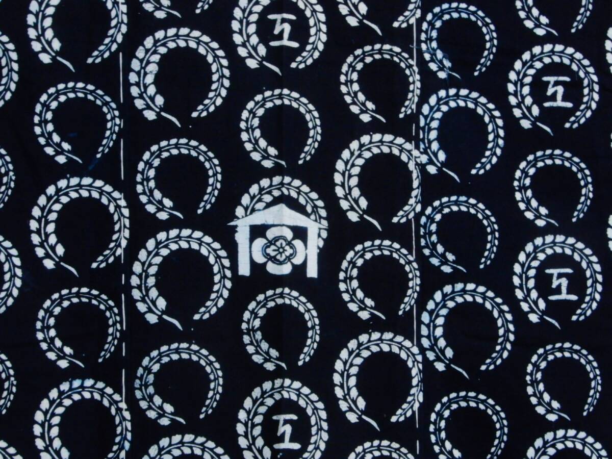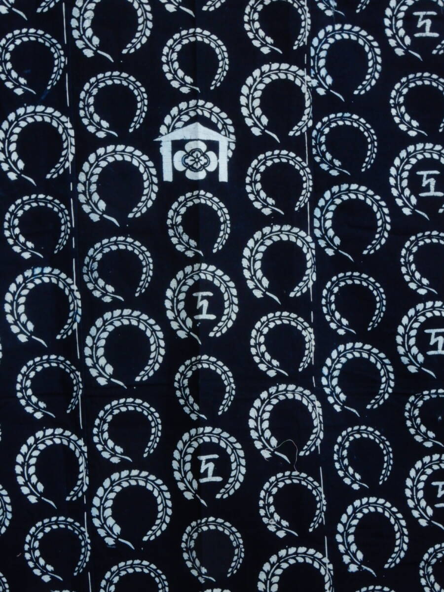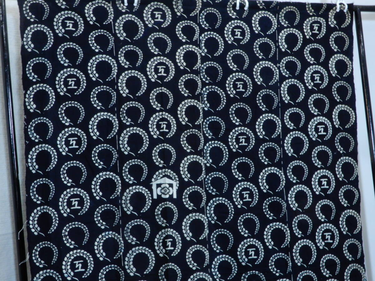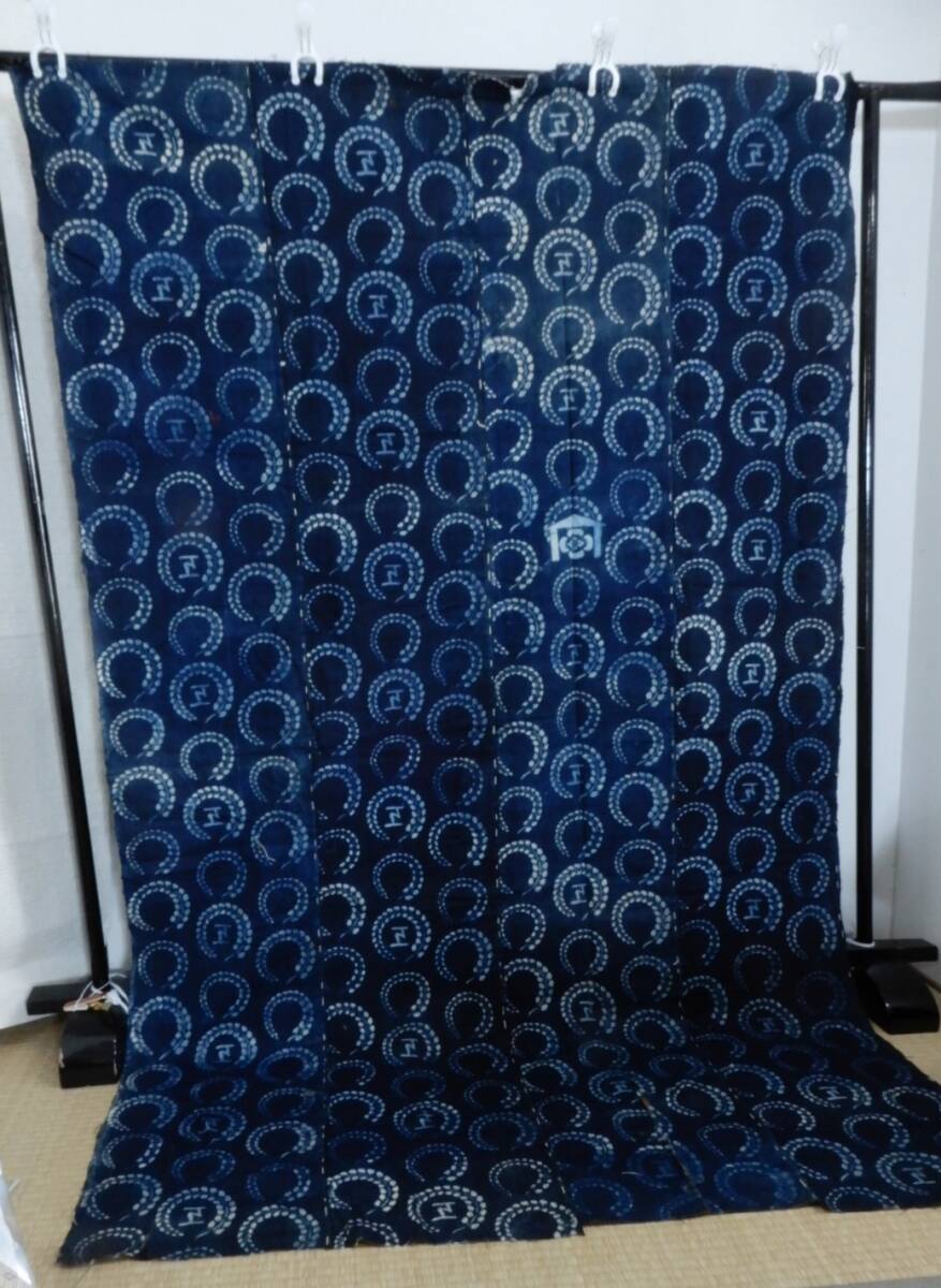 <銀の斧>木綿・明治期藍型染め・4巾・長さ約2m