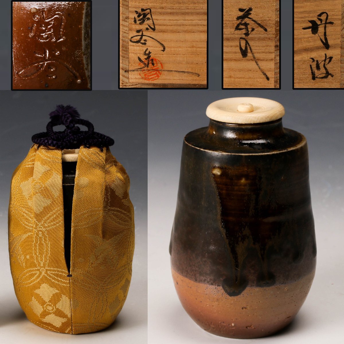 【佳香】森本陶谷 丹波茶入 共箱 仕覆(宗薫緞子) 茶道具 本物保証