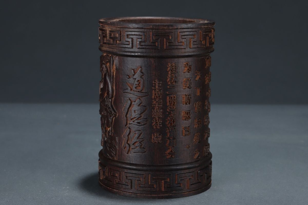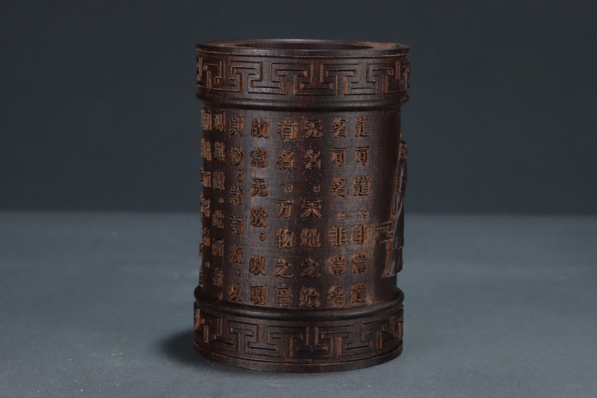 【永】清時代 老沈香 珍木彫 道德經紋 筆筒 極細工 置物擺件 古美術品 時代物 古董品 収集 古美味 旧家蔵出 中国唐物 A130