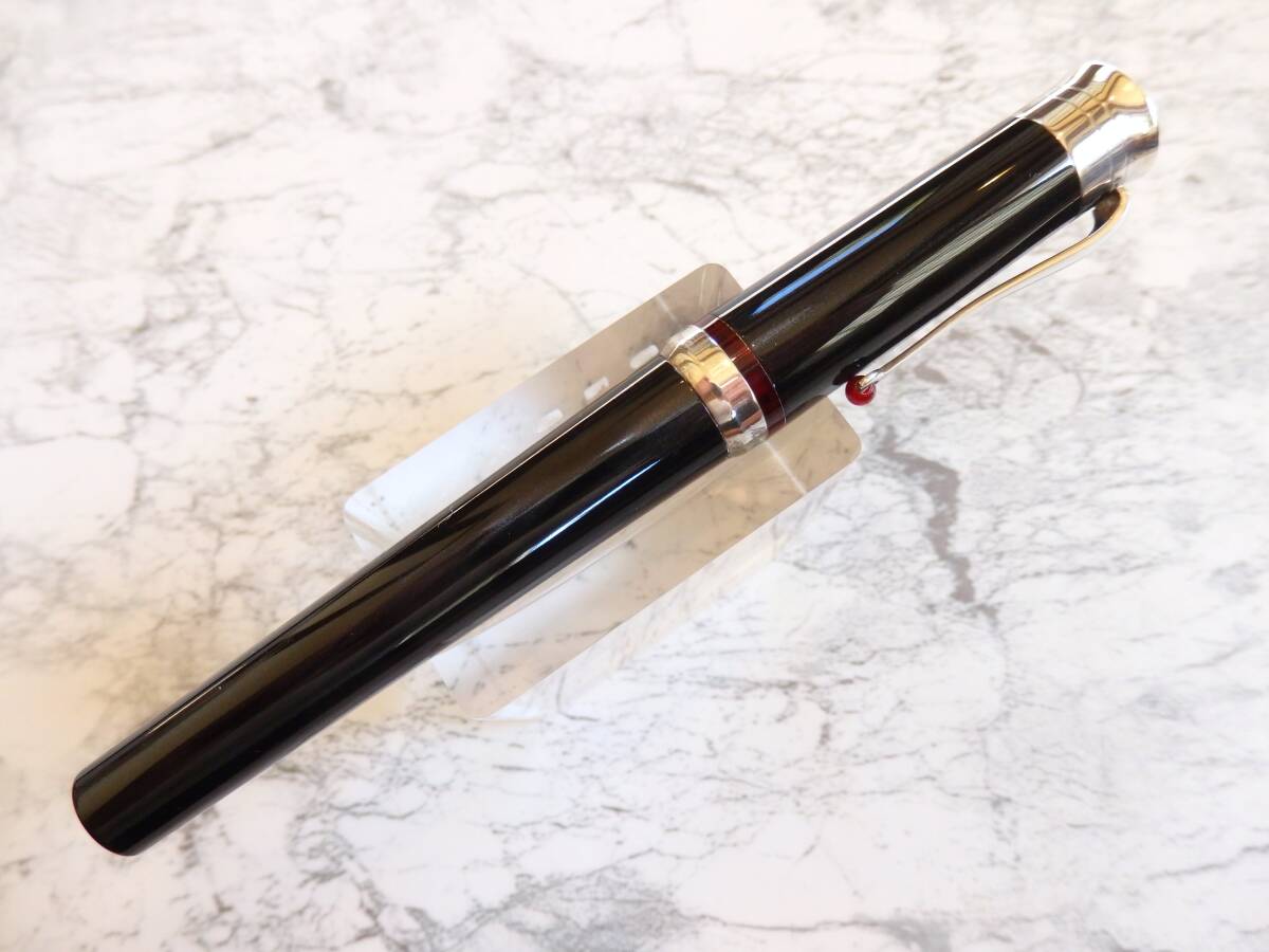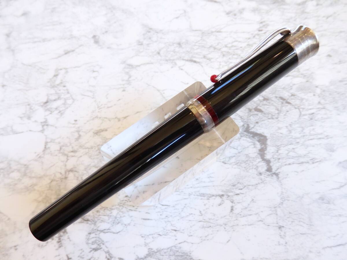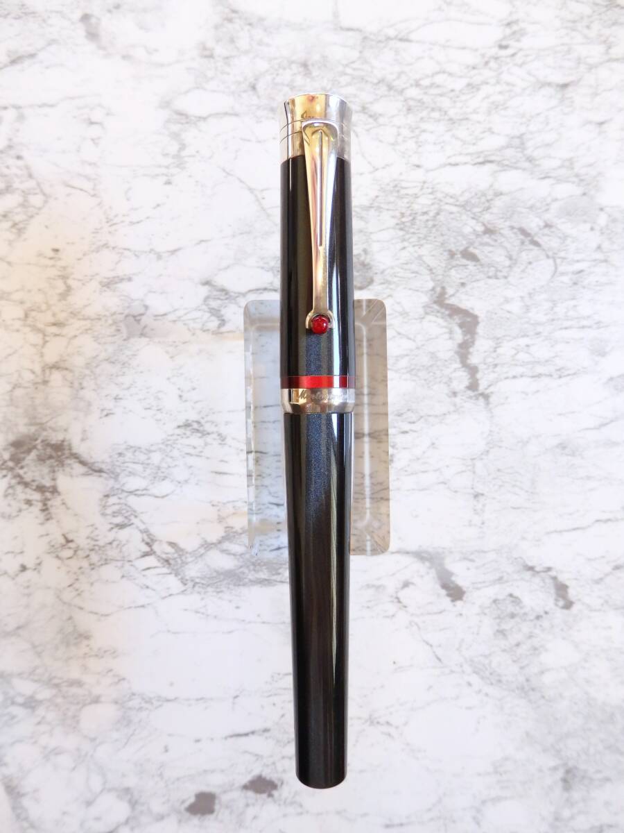 クリップの赤い輪っかが特徴的なイタリアンレジンの万年筆です。