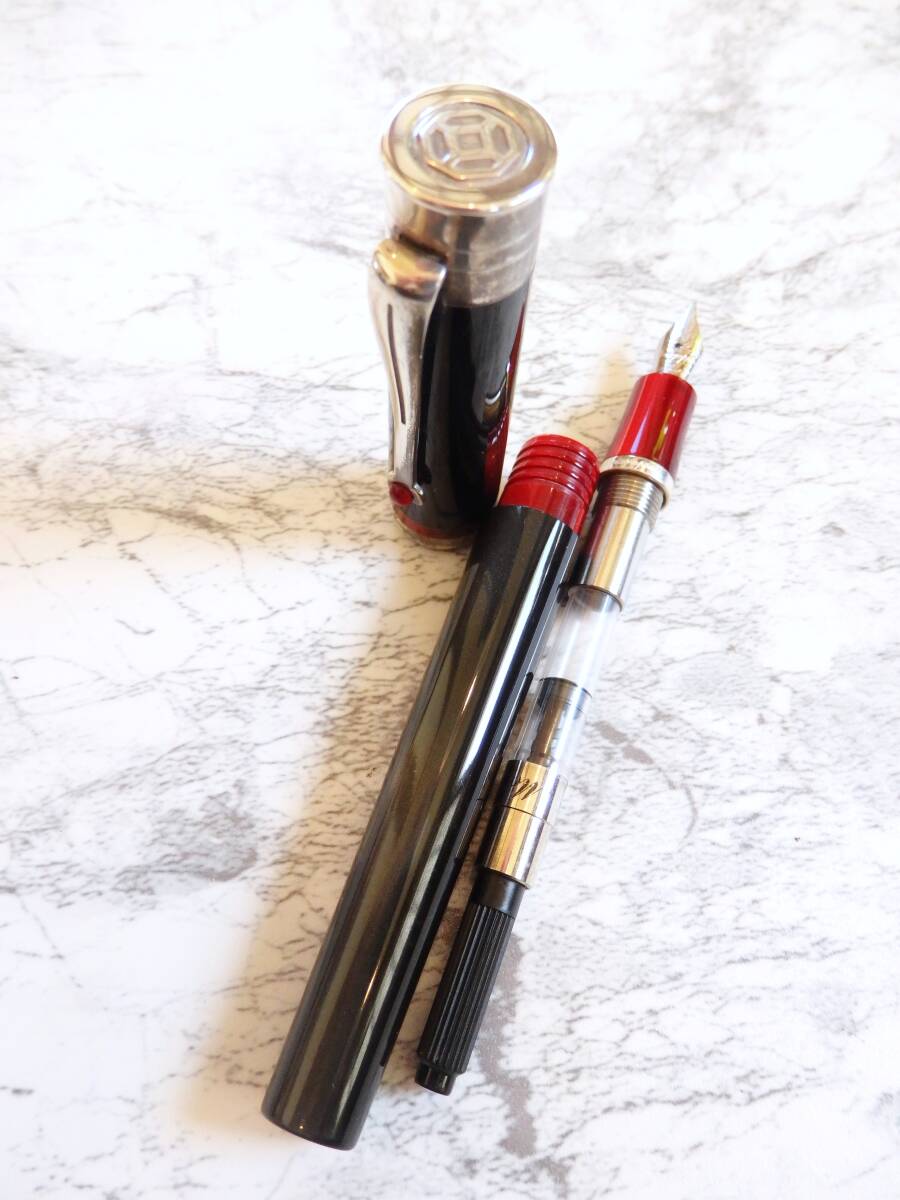 他の人とは違う万年筆が欲しいという方、キャップを開けると真っ赤な赤が出てきて、さすがイタリア製だと納得させられます。