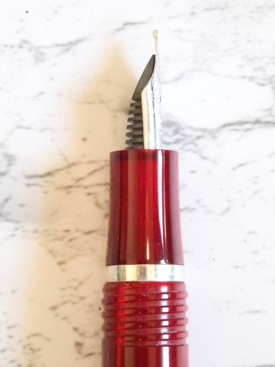 ◆インクが出ない場合:未使用・新品以外の中古万年筆は、前所有者の使用方法がわかりません。インクが出ないと言うクレームを言う方がたまにいます。インクの種類は様々です。顔料インクや古典インクのような乾燥後は水に溶けないインクを使用していた方もいます。インクが出ないのは、インクがペン芯内で乾燥して固着している場合がほとんどです。その場合、以下の方法で解決処理ください。