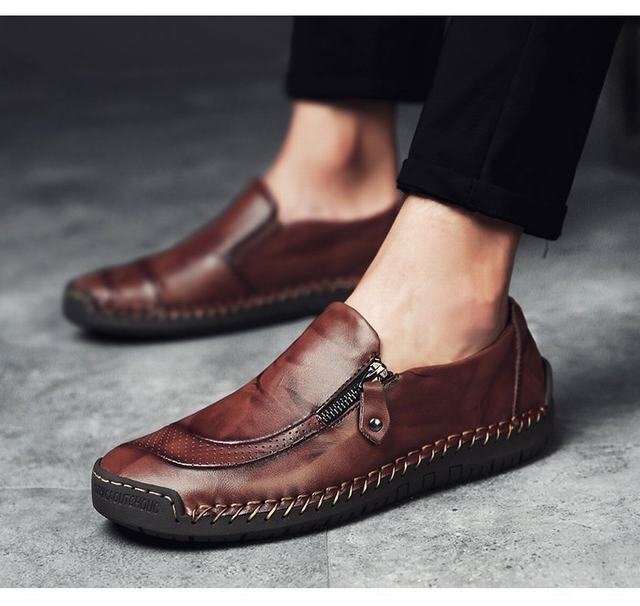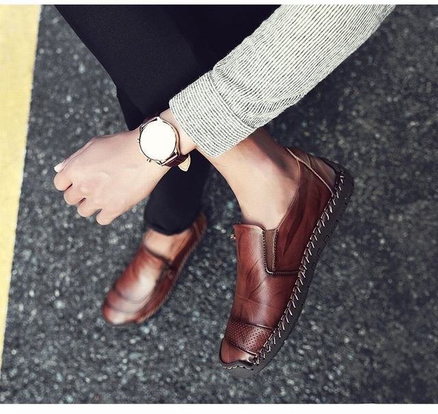 スリッポン メンズシューズ シューズ ぺたんこ 靴 ドライビングシューズ ローカット 紳士靴 革靴 歩きやすい レッドブラウン 25cm