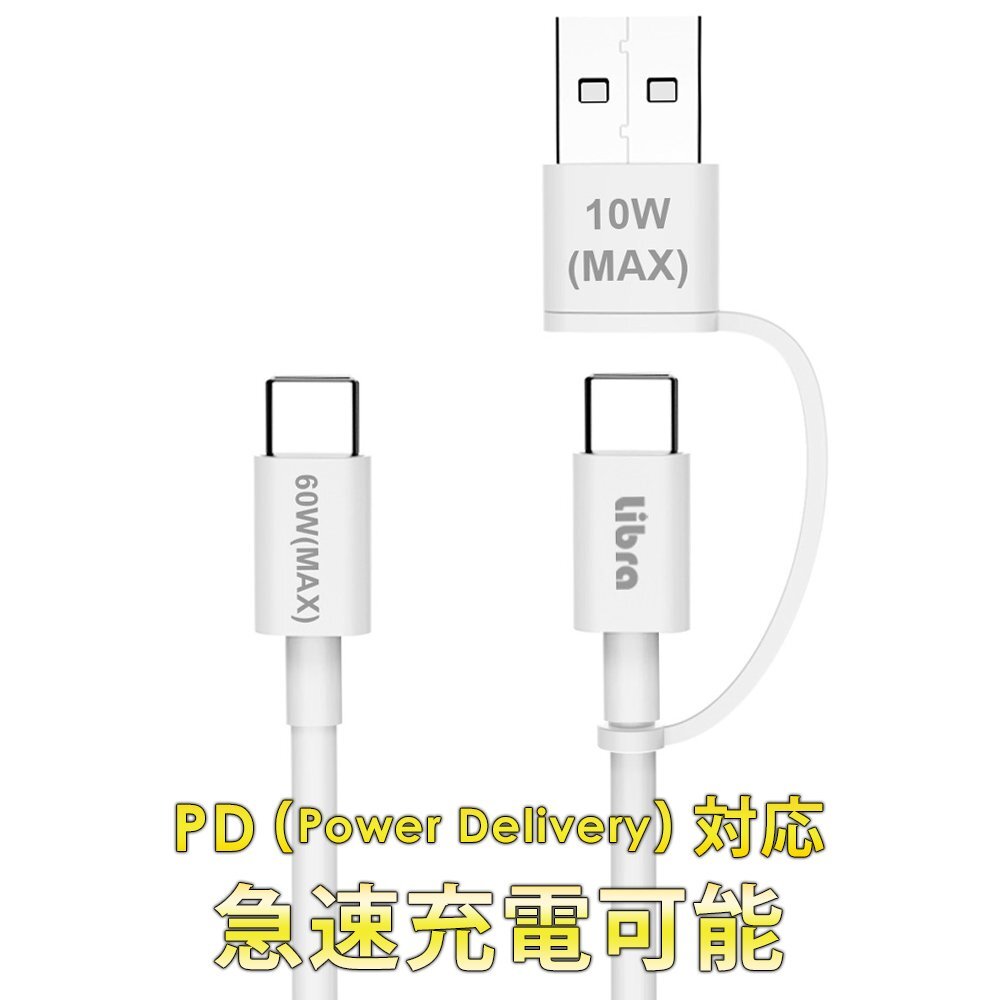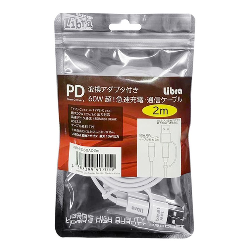 | 60W PD 変換アダプタつき 超!急速充電・通信ケーブル Type-C⇔Type-C 2m |