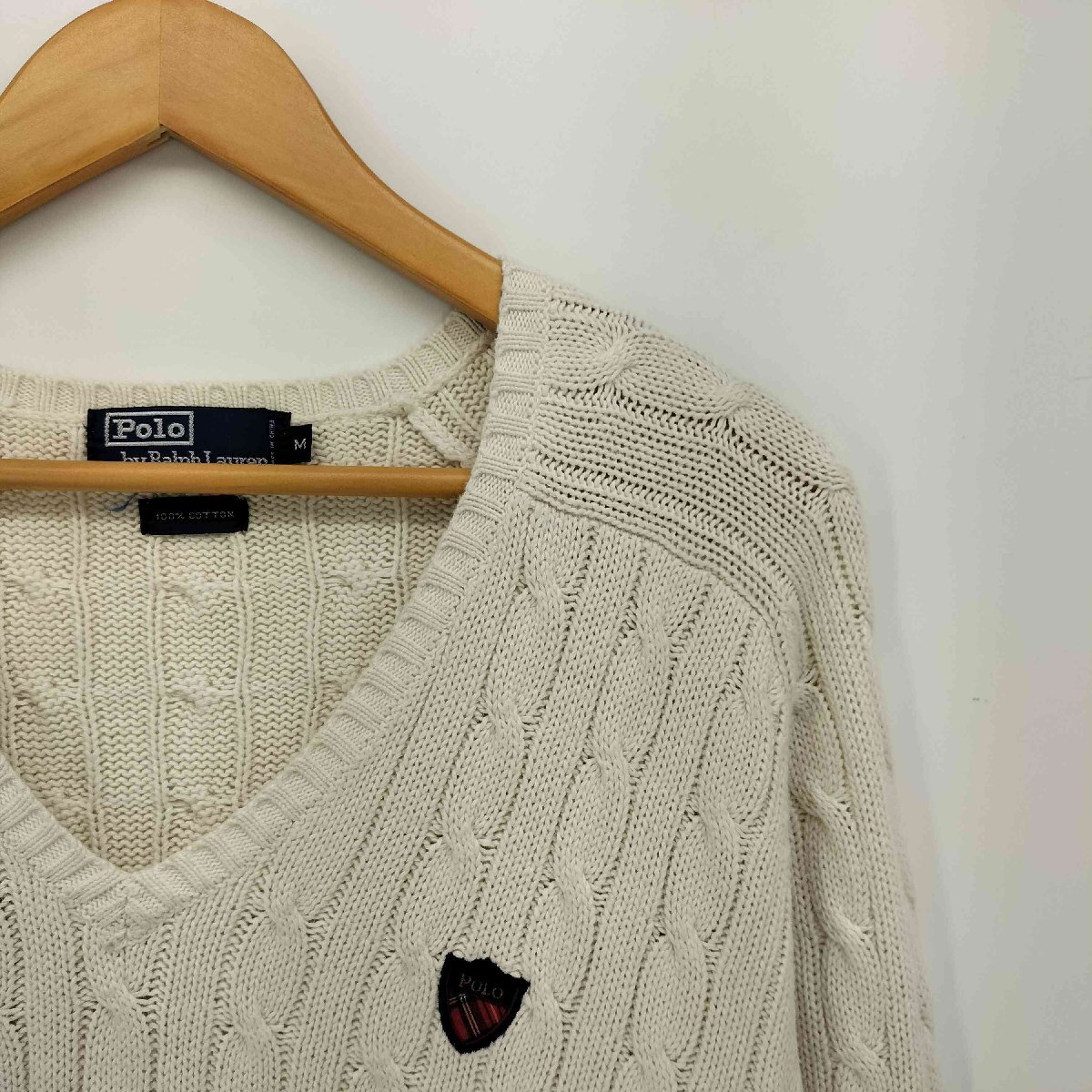 | アイテム | 90s POLO刺繍 Vネック ケーブルコットンニット |