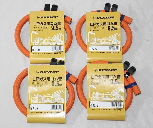 4点まとめて 未使用 ダンロップ LPガス用 ゴム管 9.5mm 0.5m 50cm ホースバンド付き DUNLOP