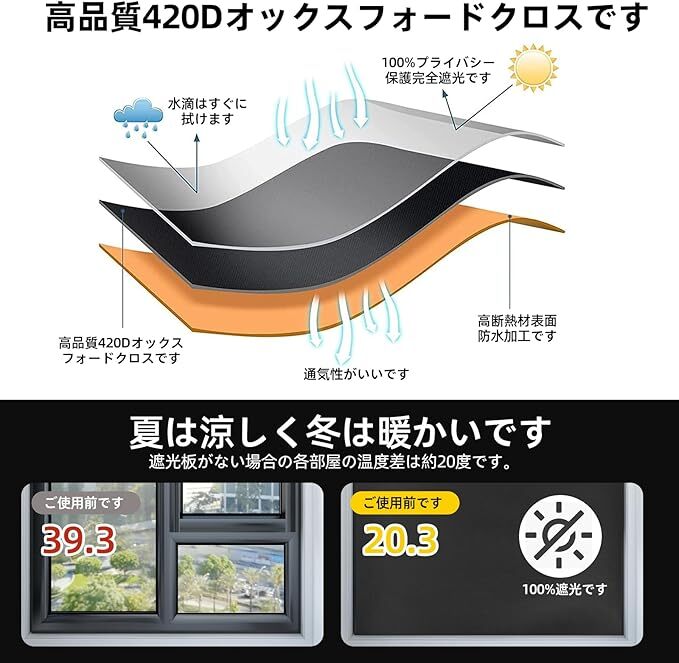 Amazon | 株式会社HJ 420D高密度オックスフォード遮光シート DIYセット ・窓用遮光カーテン・断熱・目隠し・西日対策 マジックテープ式簡単取付・防水加工
