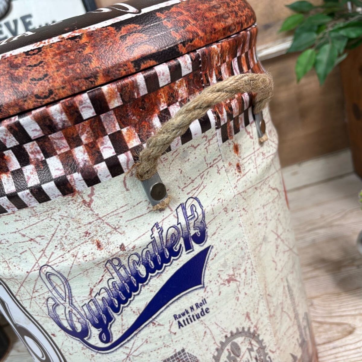 | ◆◇商品詳細◇◆ 収納ドラム缶スツール アンティークデザインのドラム缶型スツール収納付きです。座面部分にはふかふかクッション入りで座り心地の良い品です。中は収納スペースになっていて、スツールとしても小物入れとしてもお使いいただける品です。今大注目の男前インテリアにぴったりなオシャレな一品です♪アイアンドラム缶にレザー張りならではの質感がシックで抜け感のあるデザインです。大人インテリアの雰囲気アップに役立ちそうですね。アンティーク、ヴィンテージの風合いもお楽しみいただけます。花器としてもオシャレな品で、観葉植物などを飾っても素敵です!お部屋の整理整頓にも役立ちますよ!キッチン収納、ショップのディスプレイに最適。フローリングの洋室に合わせやすいですよ。アンティーク調家具が送料無料のこの価格!ほかでは買えないこの機会にぜひ! 【商品状態説明】 美品。 【サイズ】L 横幅:35㎝(直径) 奥行:35㎝ 高さ:44.5cm 収納部分内寸直径33.5㎝×高さ38.5㎝ 【素材】 本体:アイアン 表面:合成ビニールレザー フタ:一部木製クッション材 【カラー】 ホワイト 【参考価格】 ¥9,000 | ◆◇発送方法◇◆ ●送料は基本無料ですが、沖縄・離島などにお住まいの方はご負担ください。 (沖縄・離島の方はメールにてご連絡いただければ、送料をお知らせいたします。) ●ヤマト運輸・佐川急便・第一貨物のいずれかにて配送いたします。 (運送会社の指定はできません。ご了承ください。) ●日時・時間指定のある方や、お問い合わせ(追跡)番号をご希望の方は取引連絡の際にお知らせください。 | |
