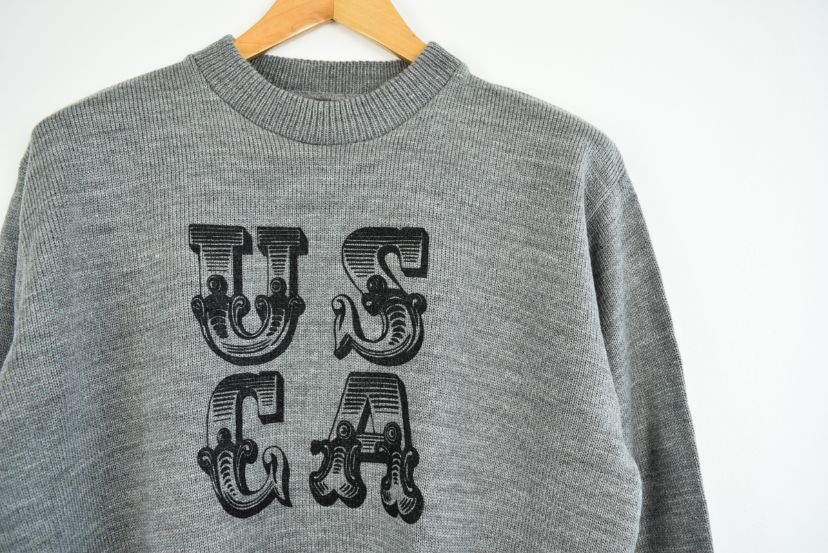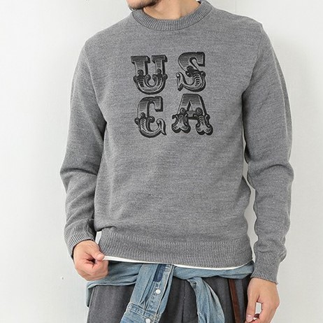 新品 アメリカ製 BEAMS PLUS 別注 THE DAY ロゴ ニット セーター S 管理番号N229Q5672