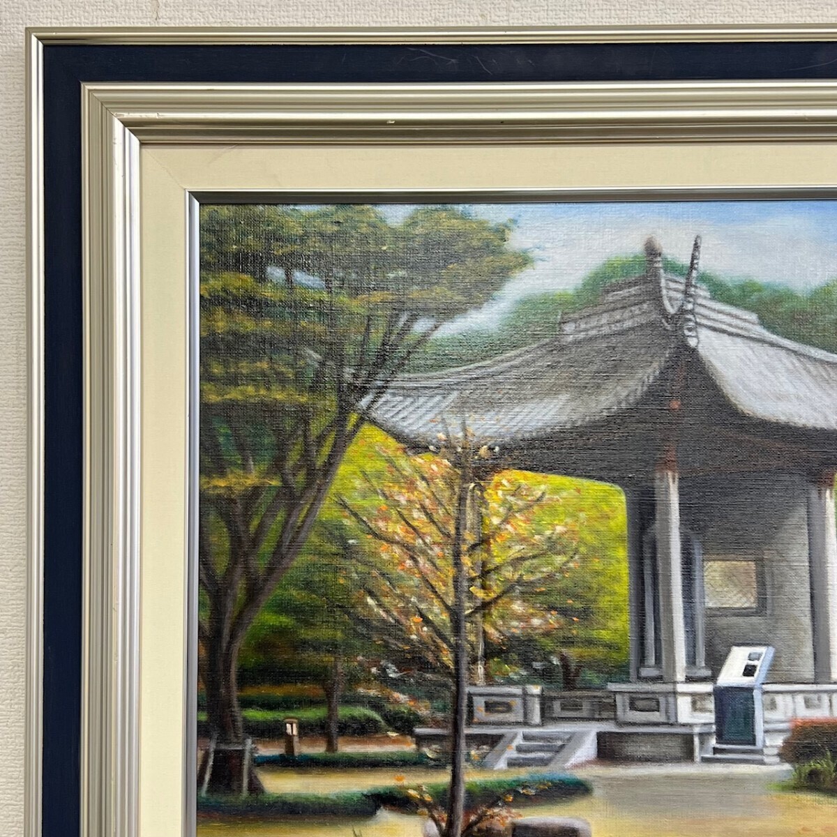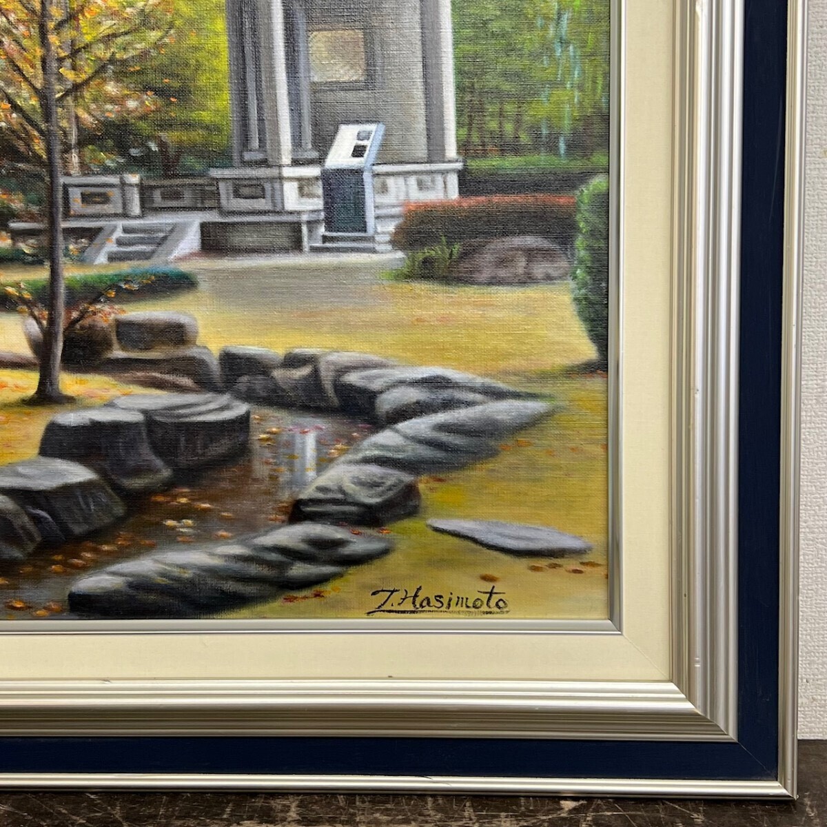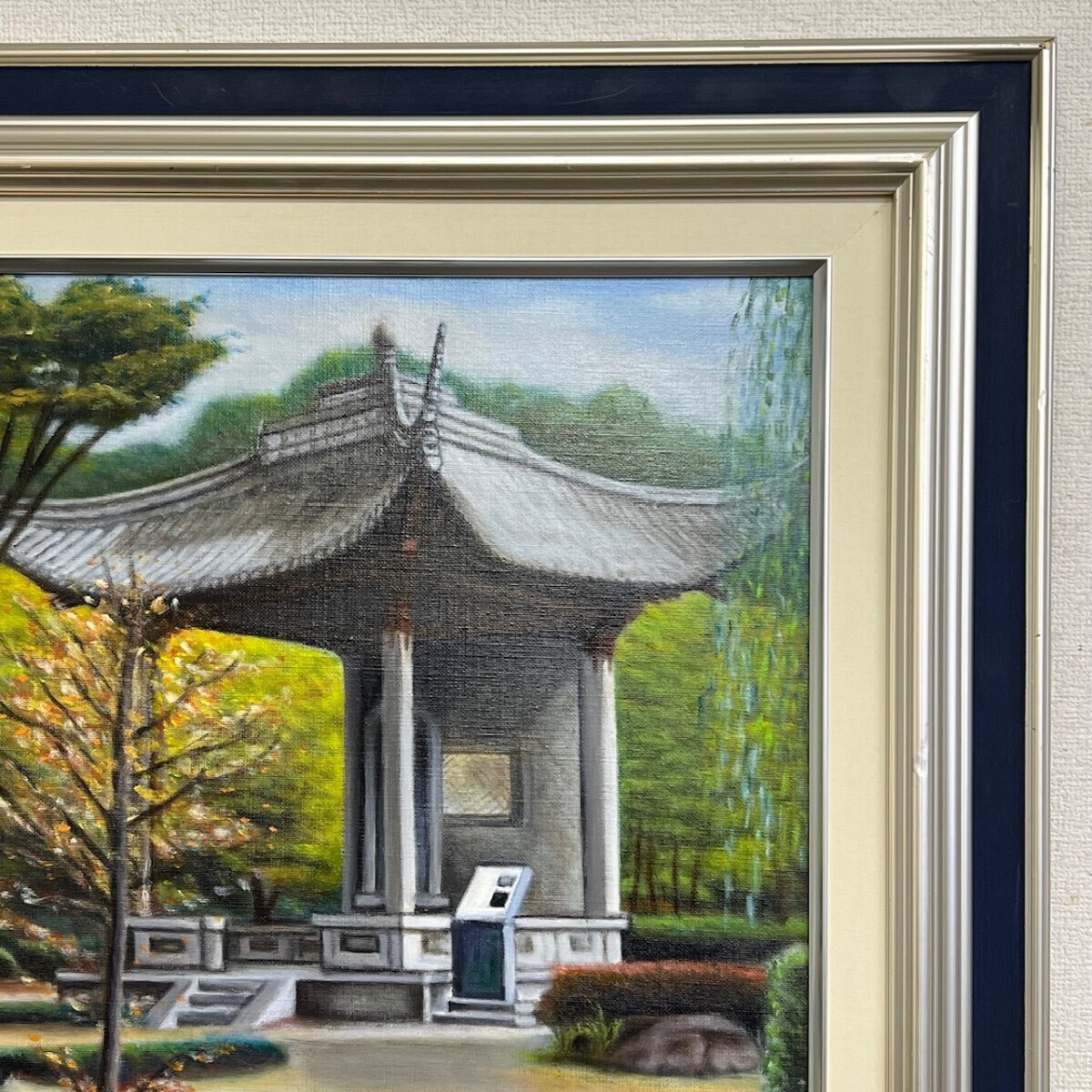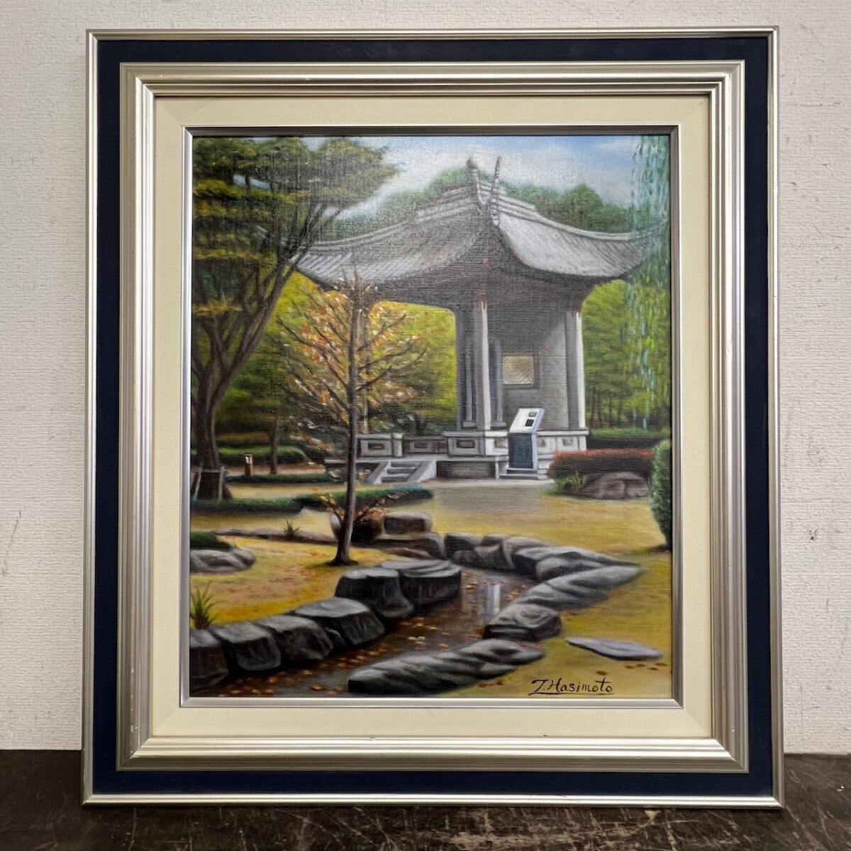 真作!橋本利男『小蘭亭』北山緑化植物園 油彩 10号 風景画 額寸縦約71cm×横約64cm