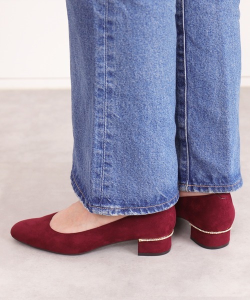 参考商品名:ビジューラインヒール スエード調プレーンパンプス