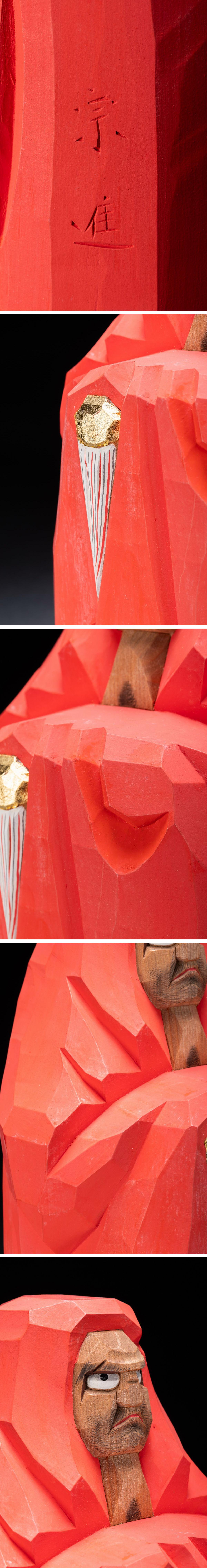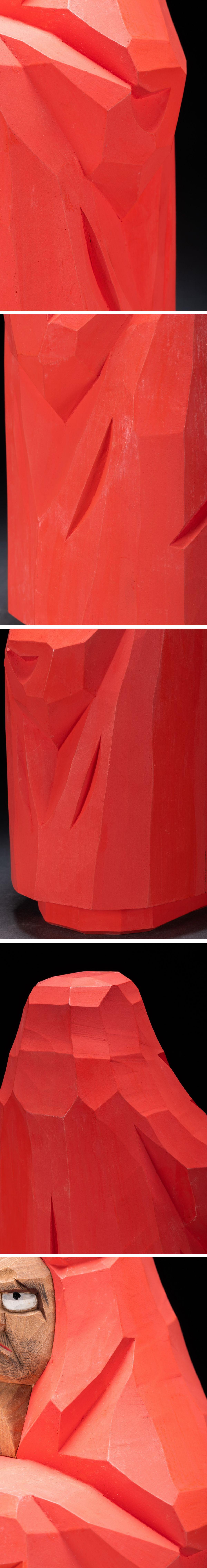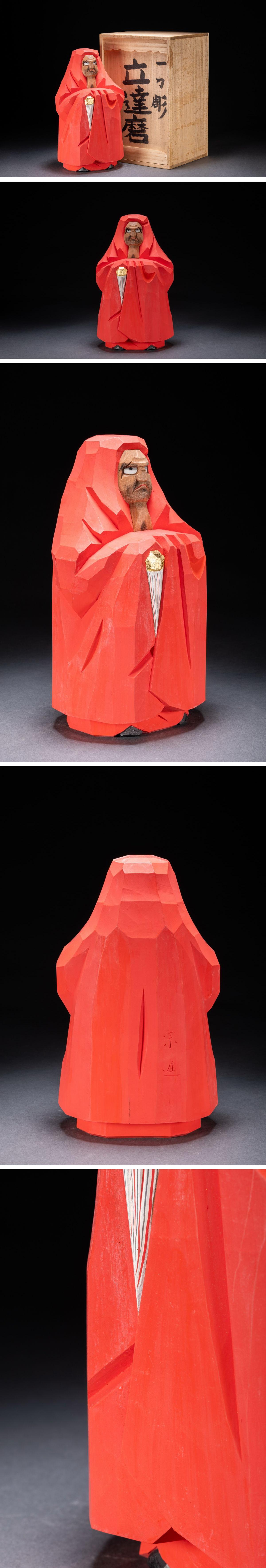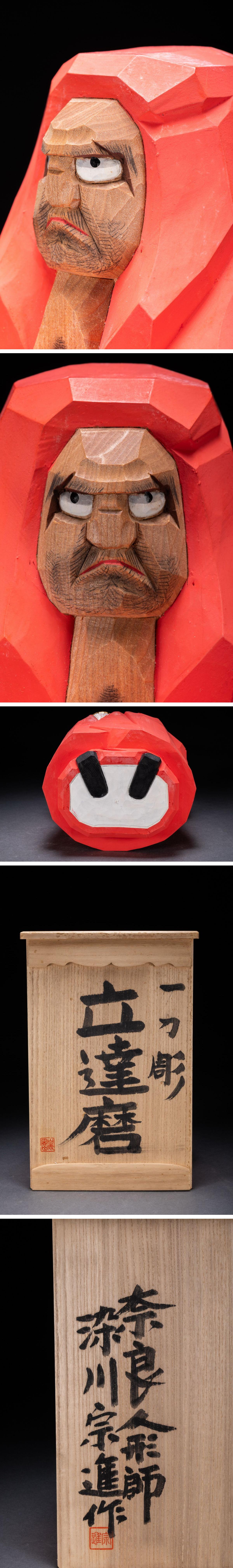 【清】某有名オークション購入 奈良人形師 染革宗進作 一刀彫 立達磨造像 共箱 和風インテリア7L8-67S