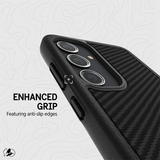 背面にハード素材のポリカーボネートをカーボン風にデザインし、側面にソフト素材のTPUを使用