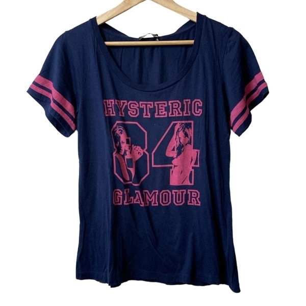 ヒステリックグラマー HYSTERIC GLAMOUR 半袖Tシャツ サイズF - ネイビー×ピンク レディース クルーネック トップス