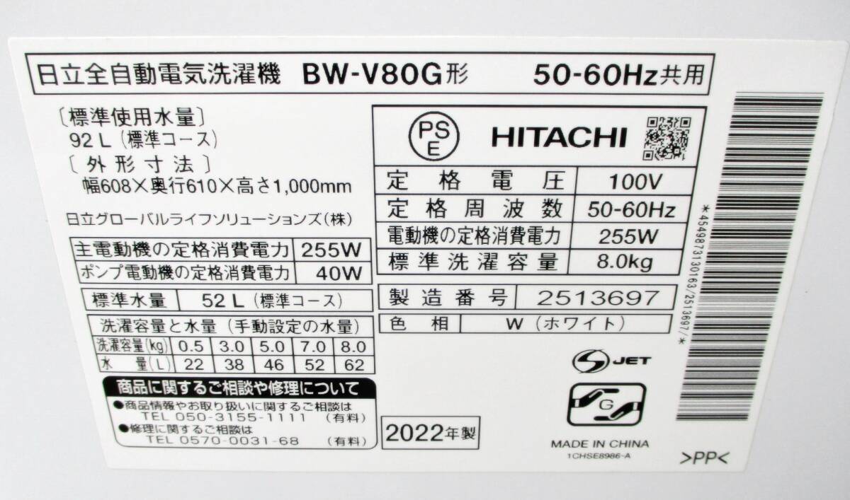 | | 【3ヵ月保証】高年式 2022年製 日立 8.0㎏ 洗濯機 BW-V80G 動作良好 ビートウォッシュ 大流量ナイアガラ HITACHI 215ZS | |