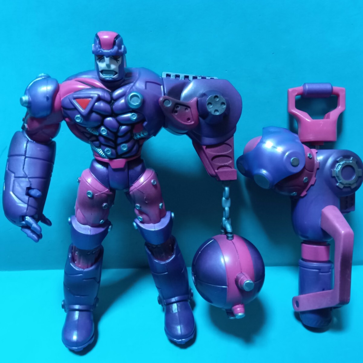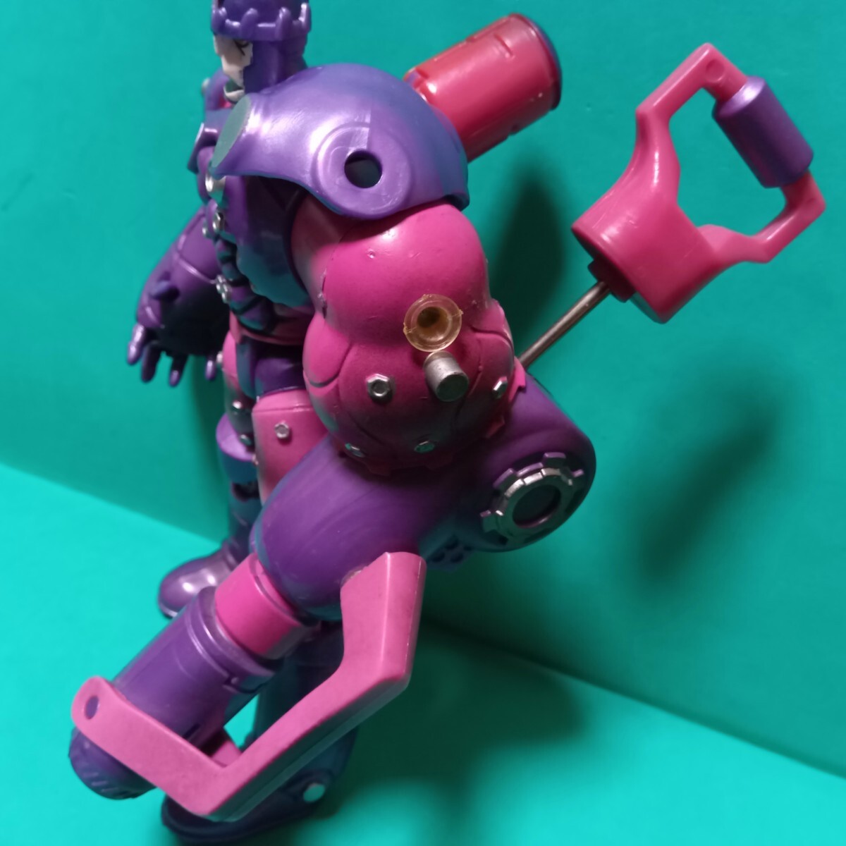 中古。若干のネタつき、汚れございます。左腕が鉄球と水鉄砲に換装できます。足の伸縮ギミック付。ギミックは健在です。パーツ揃い。