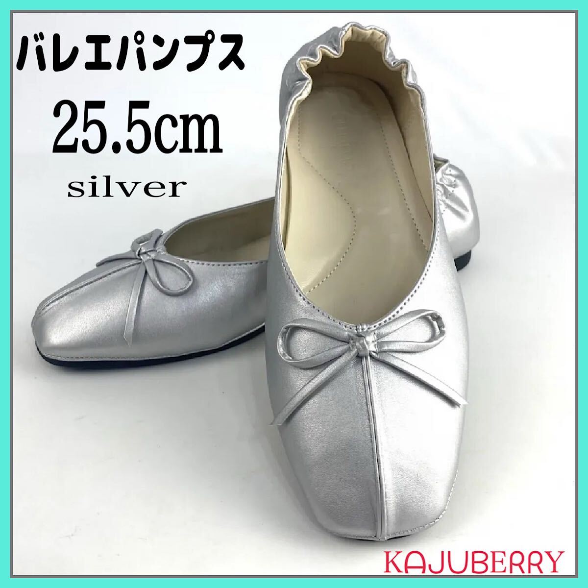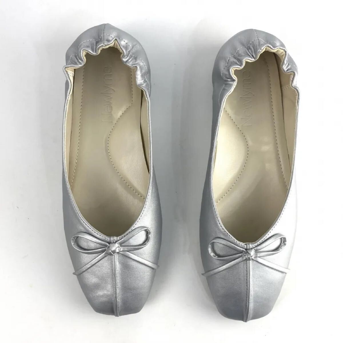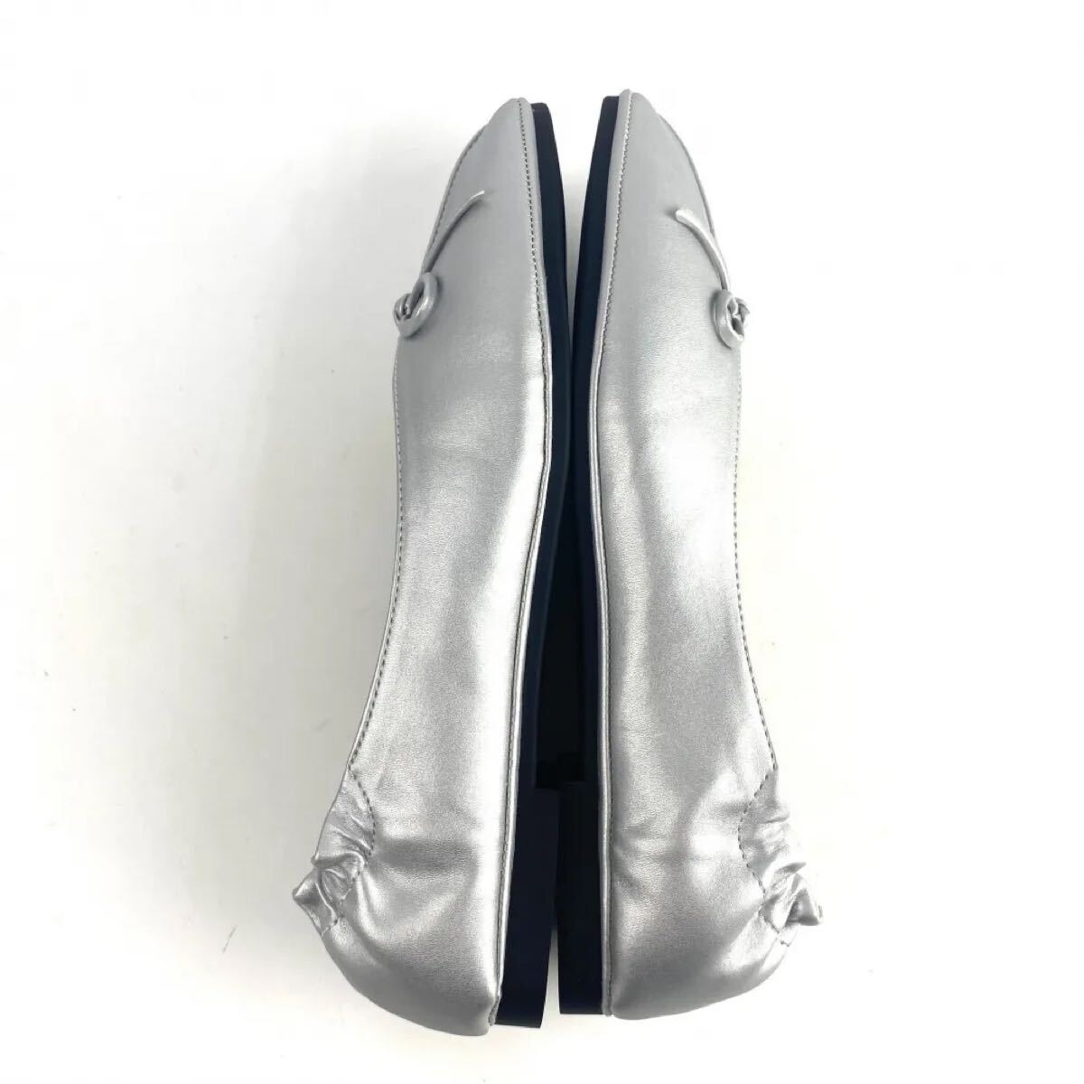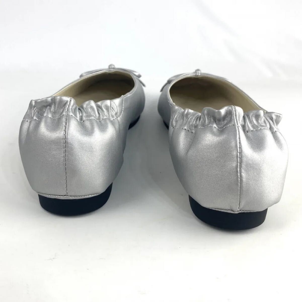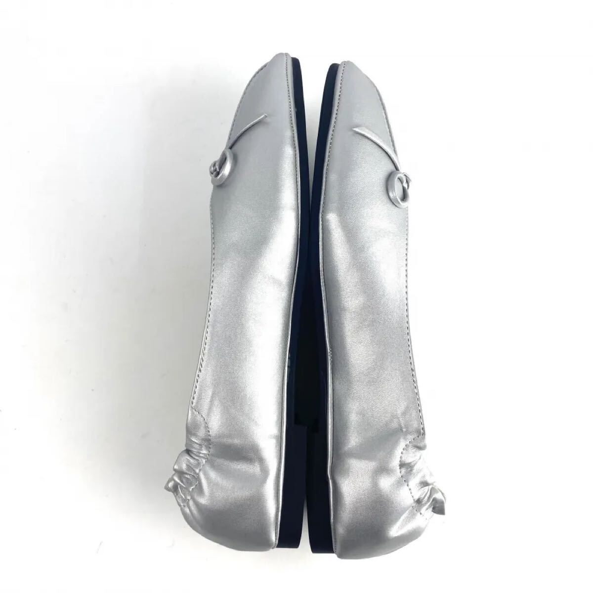 新品 リボンバレエパンプス 韓国 オルチャン シルバー 25.5cm