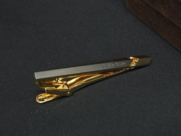 ■美品■ YVESSAINTLAURENT イヴサンローラン ネクタイピン タイクリップ アクセサリー メンズ ゴールド系×シルバー系 DI3869