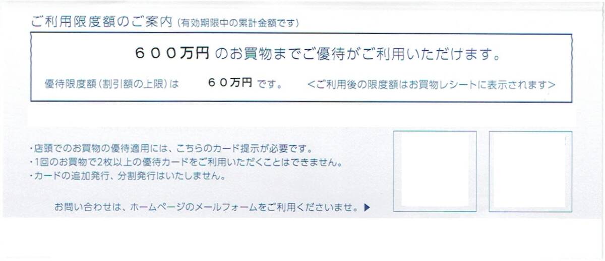 三越伊勢丹HD株主優待カード 10%割引 限度額 600万円