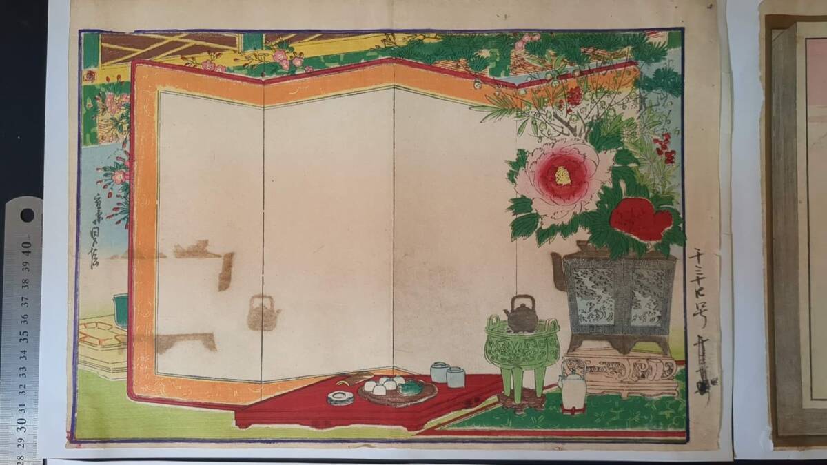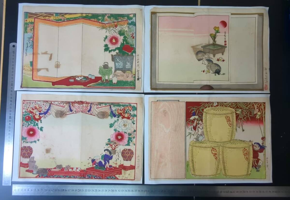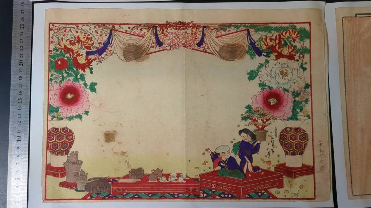 S101706浮世絵 真作 版画  正月用刷物 引き札見本帖 金澤近廣堂印   木版画 錦絵