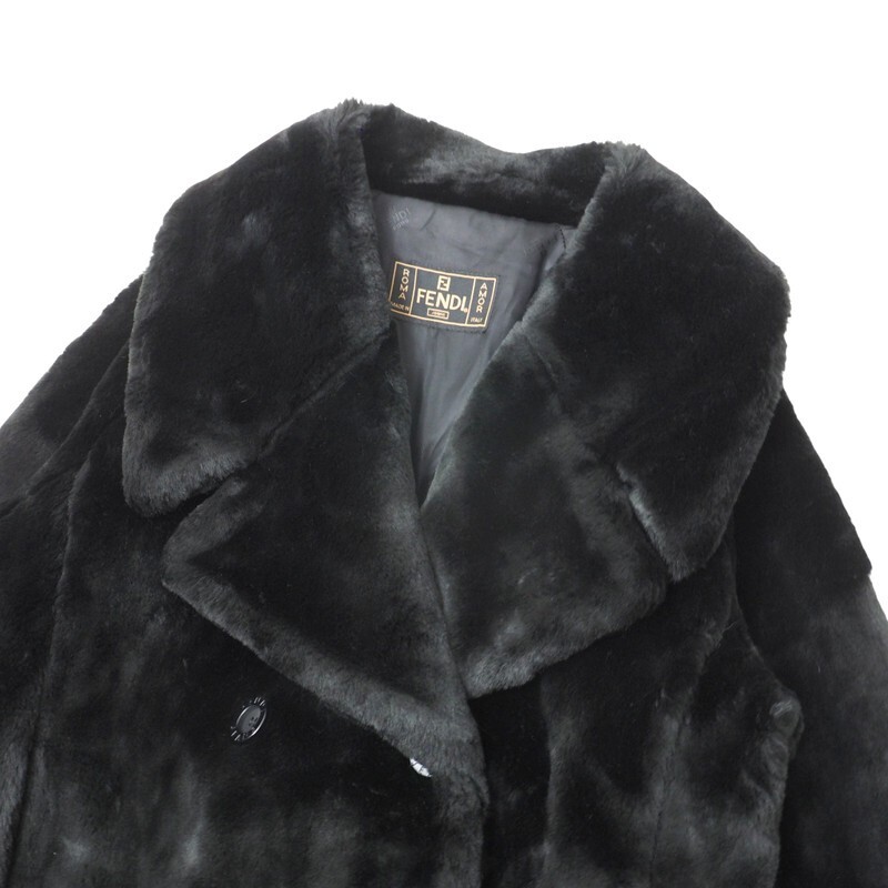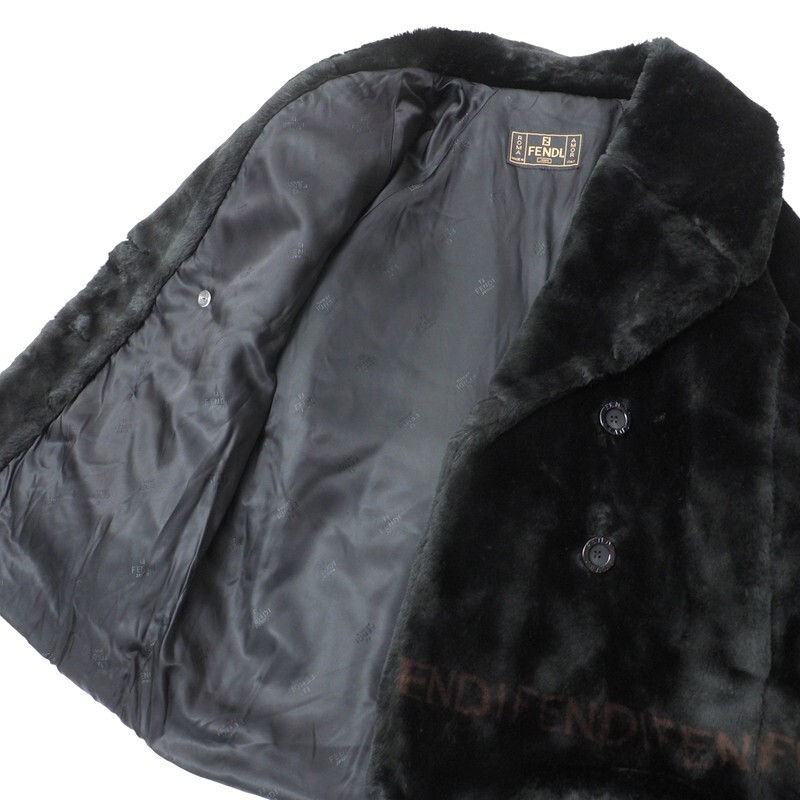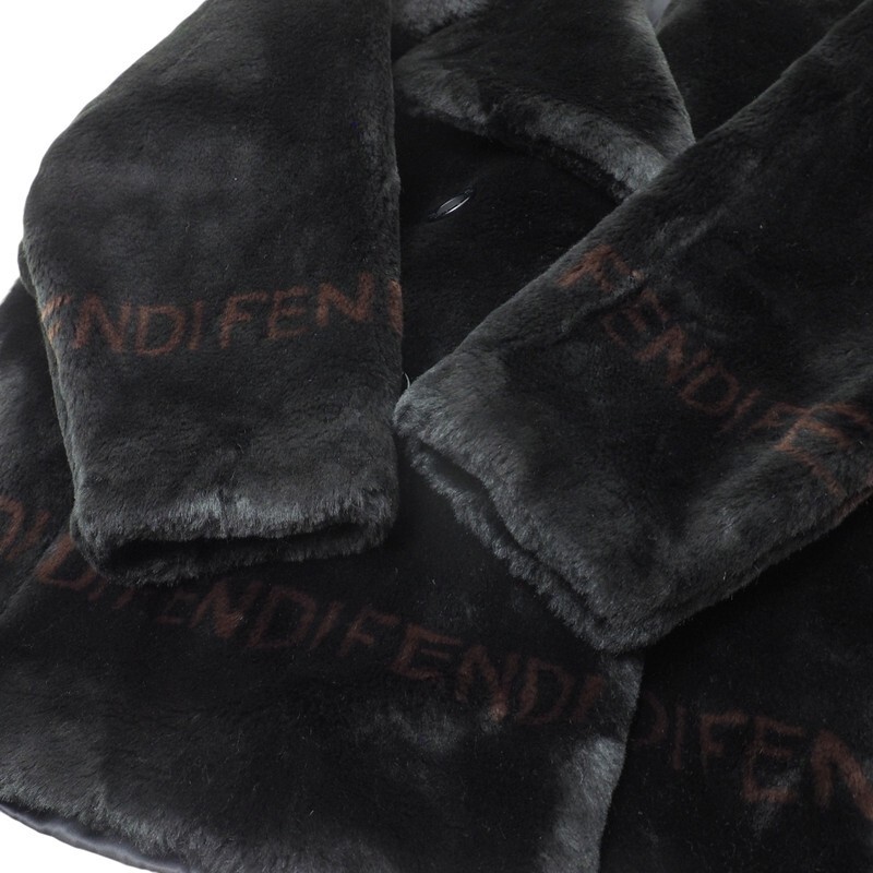 MI1573□イタリア製 フェンディ/FENDI JEANS フェイクファーコート エコファーコート ダブルブレスト ミドル丈 サイズ42 黒×茶系 | |||