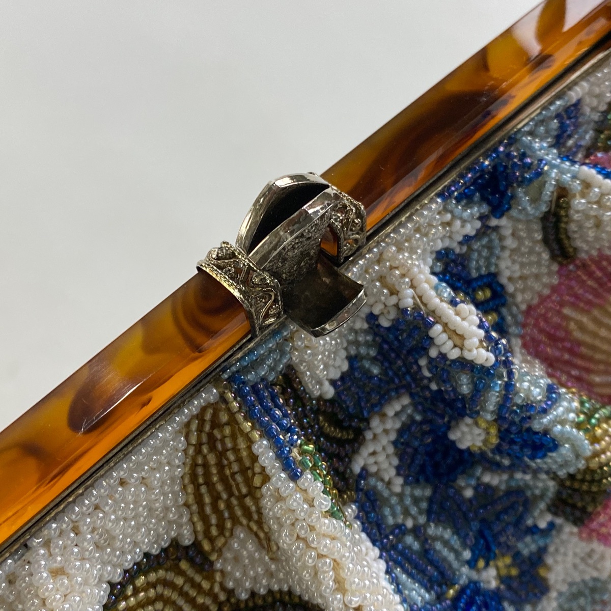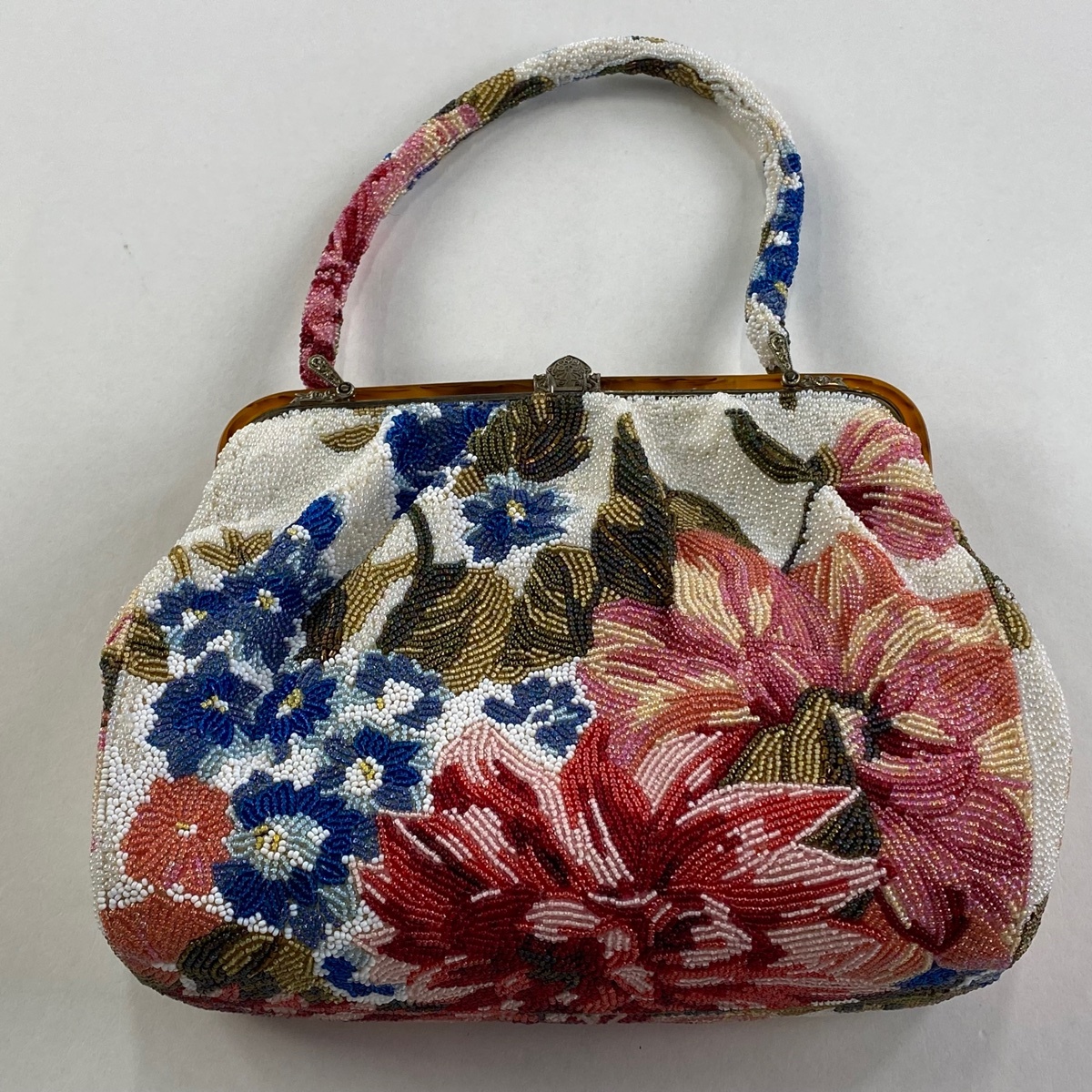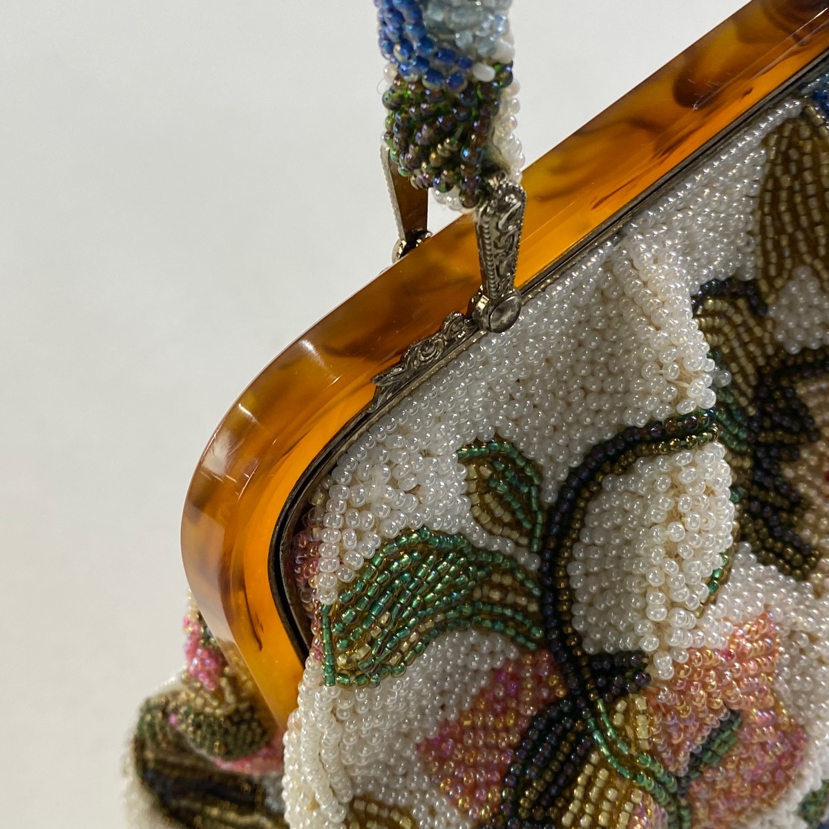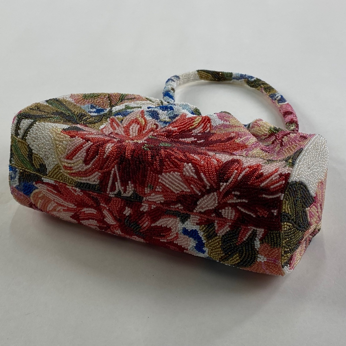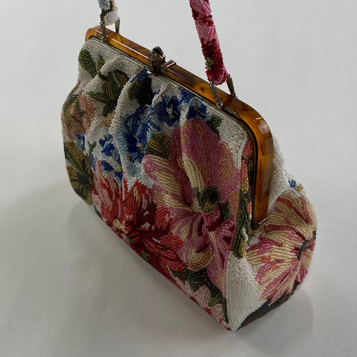 | 和装バッグ 名品 ビーズバッグ フォーマル 草花 白 ビーズ 和装小物 【中古】 |