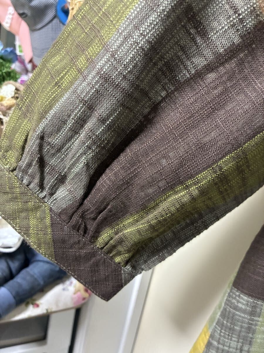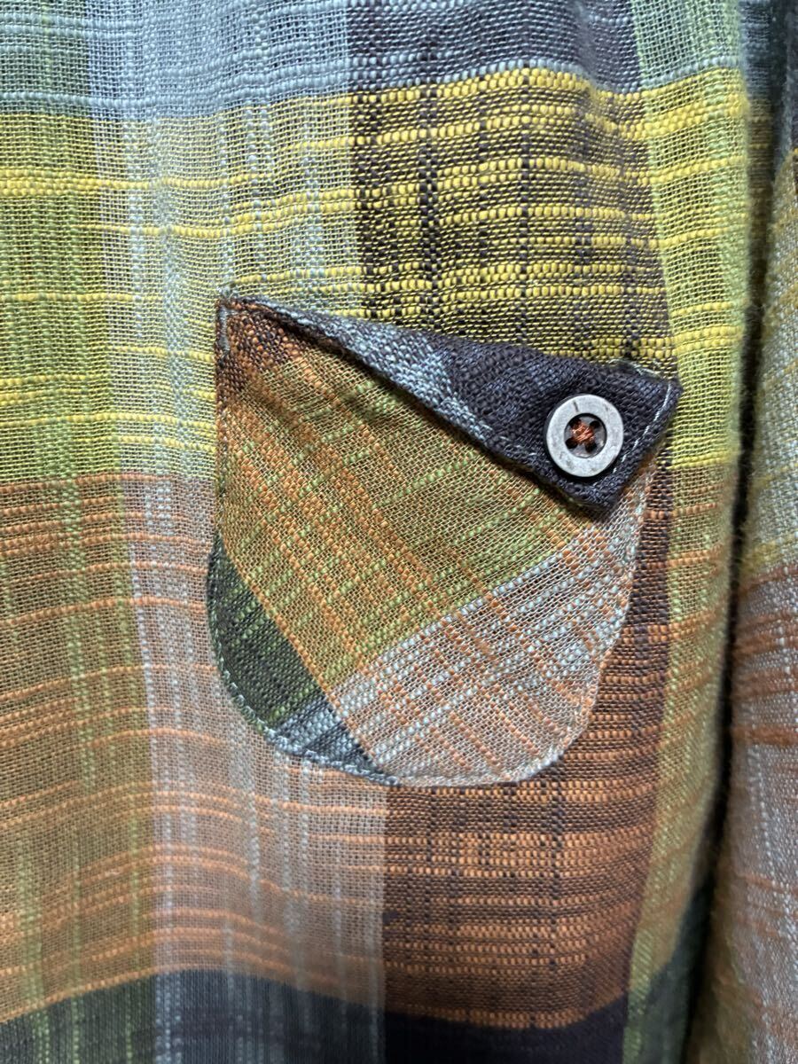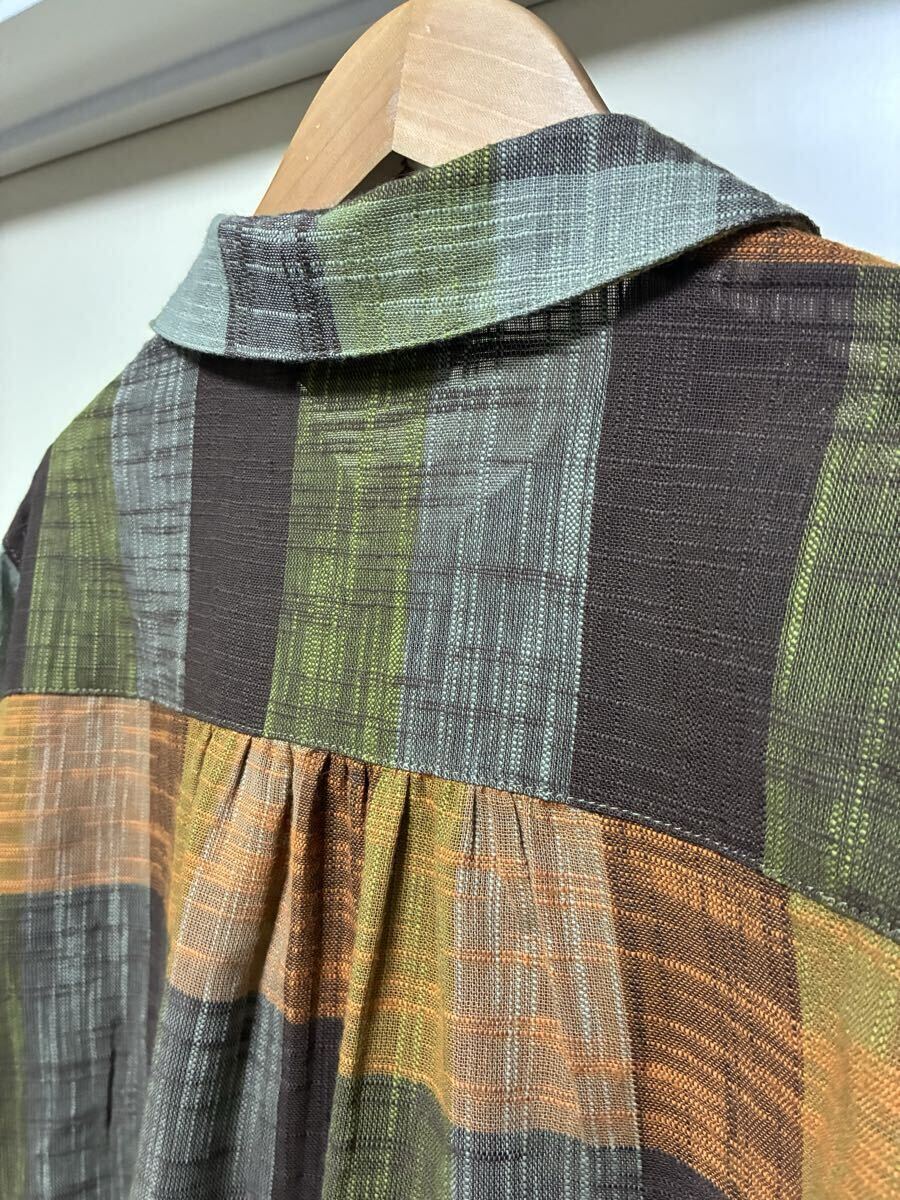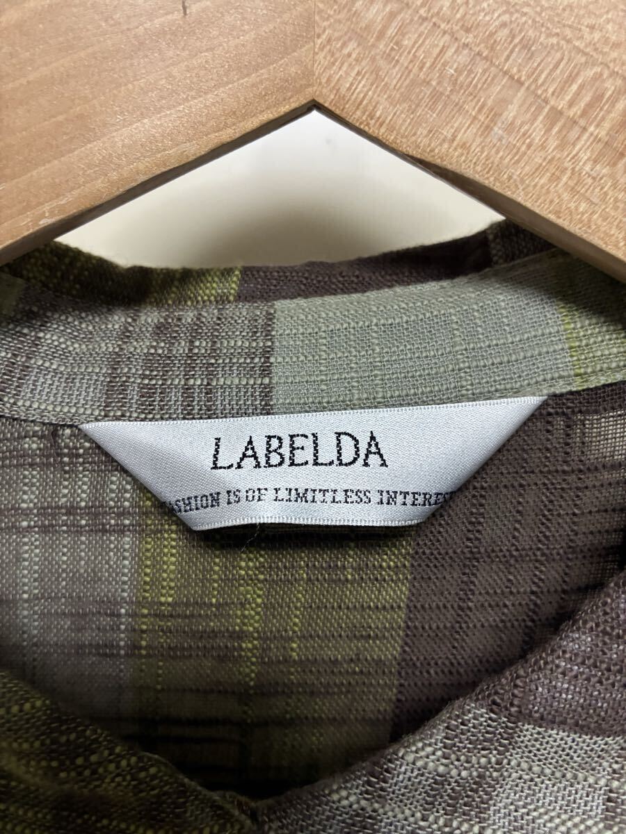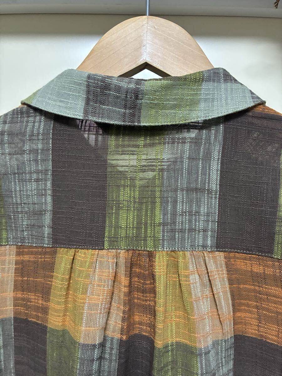 ★LABELDA★大きいサイズ★落ち着きのある色合いのチェック柄で胸元のポケットがお洒落な揺ったりブラウスになります。ブラウン系を基調とした色合いのチェック柄で襟はちび丸襟で前中心はボタンになっています。左側の胸元には小さなポケットが付いています。両肩や後ろ側の背中辺りにはギャザーが入っています。裾辺りの両サイドは緩やかなカーブを描いていて着丈は後ろ側がやや長めになっています。揺ったりとしたお洒落な一枚に仕上がっています。
