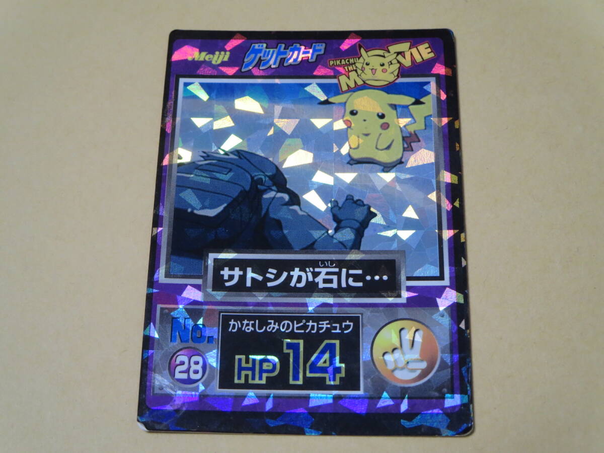 ロ Meiji ポケモン ゲットカード No.28【サトシが石に…(かなしみのピカチュウ)】PIKACHU THE MOVIE 明治 1998