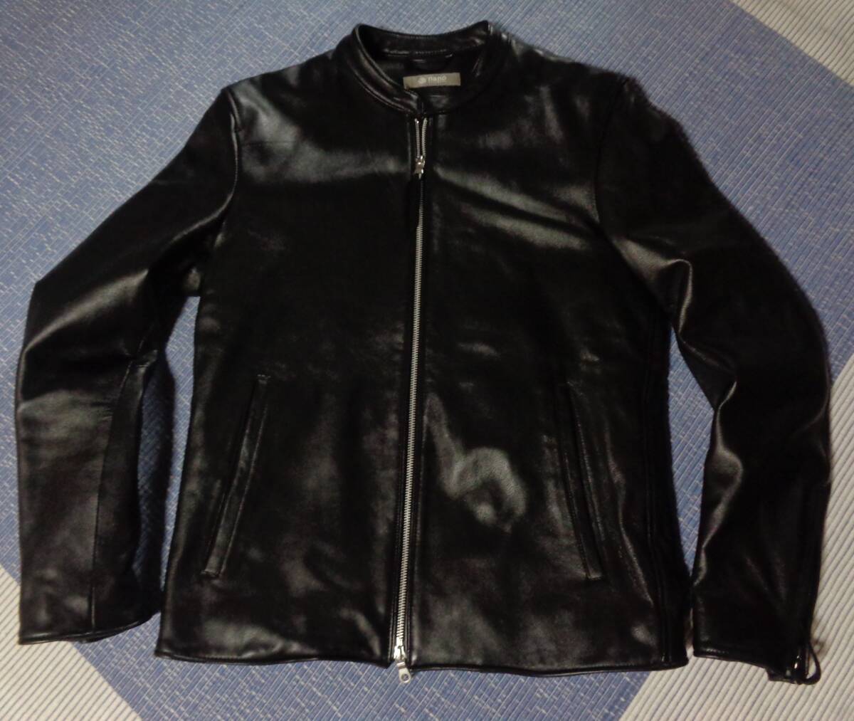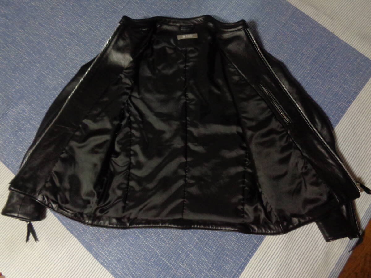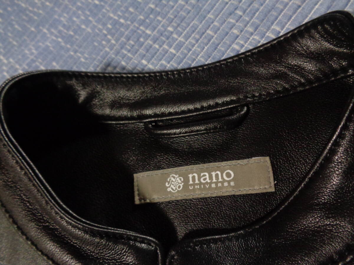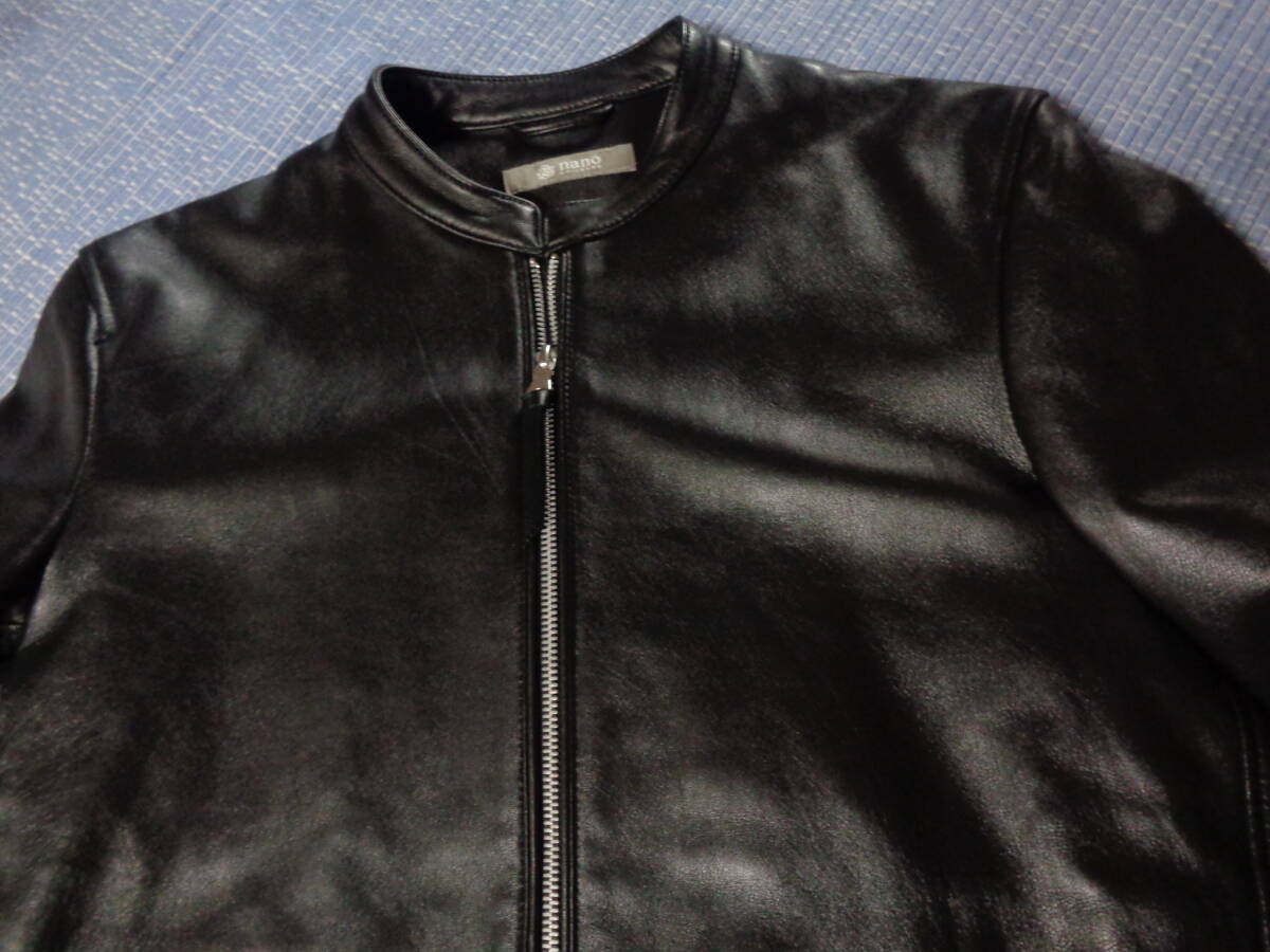 Lサイズ/本革/ナノユニバースnano・universe/羊革シープスキン/ レザージャケット/シングルライダース/革ジャン/ブルゾン/中綿/ブラック黒