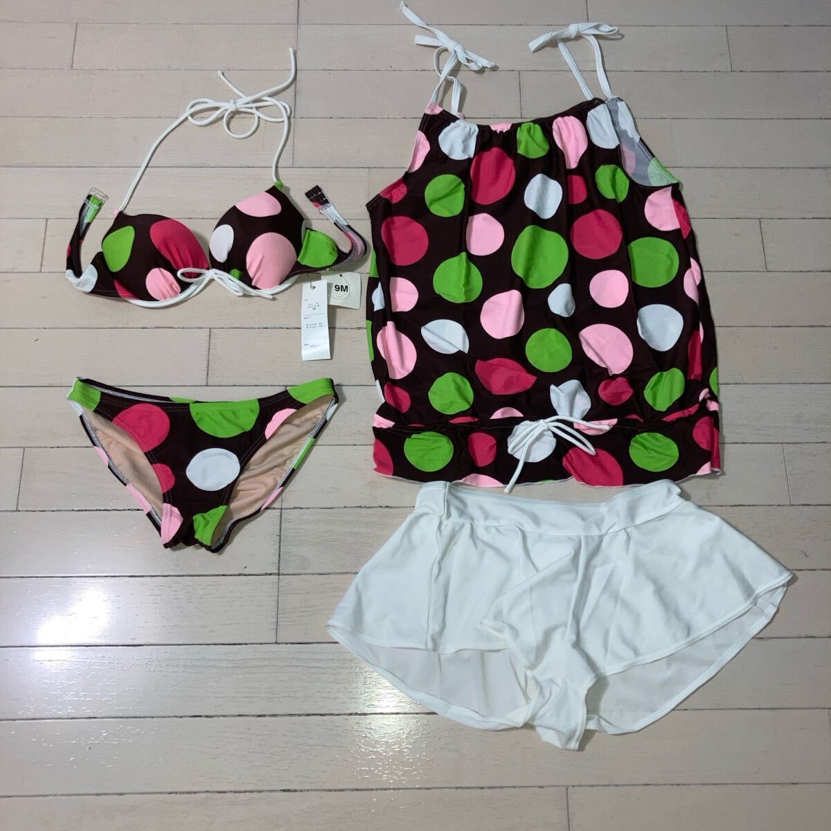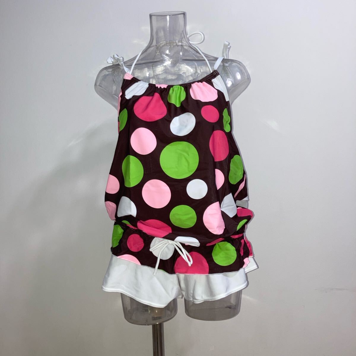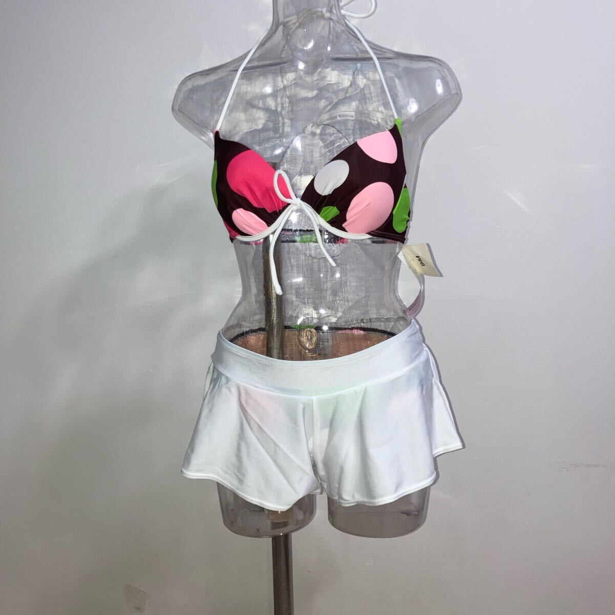 かわいいビキニです。ノースリーブとパンツは、ラッシュガード生地です。